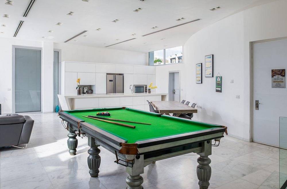 חדר פנאי עם משחקי שולחן, טלוויזיה וסוני פלייסטיישן