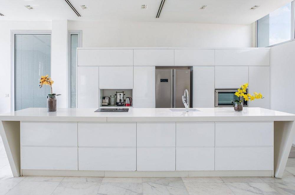 מטבח מאובזר קומפלט עם 2 מקררים, כיריים חשמליות, קומקום חשמלי, מדיח כלים, תנור, מיקרוגל, מכונת קפה, כלי אוכל והגשה