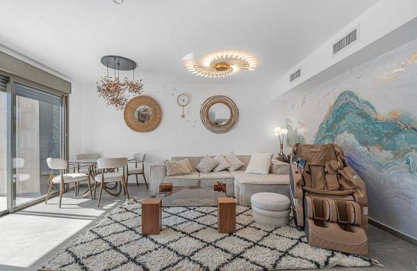 סלון מרווח עם כורסת עיסוי מפנקת, טלוויזיה חכמה וחיבור לFree-TV
