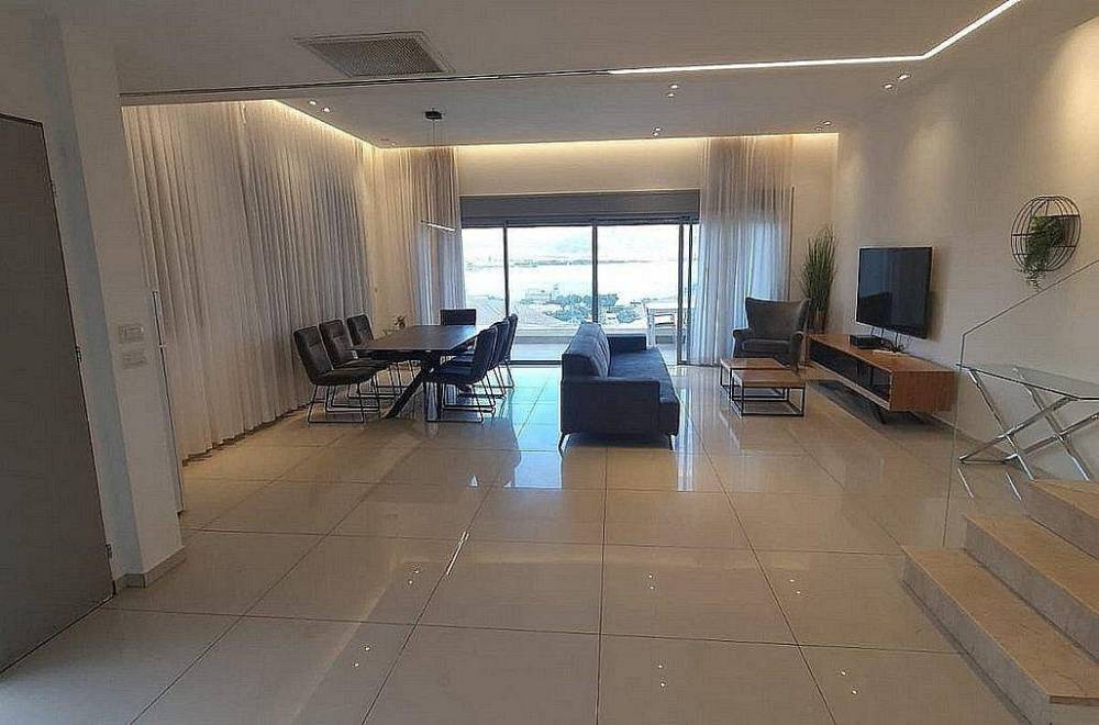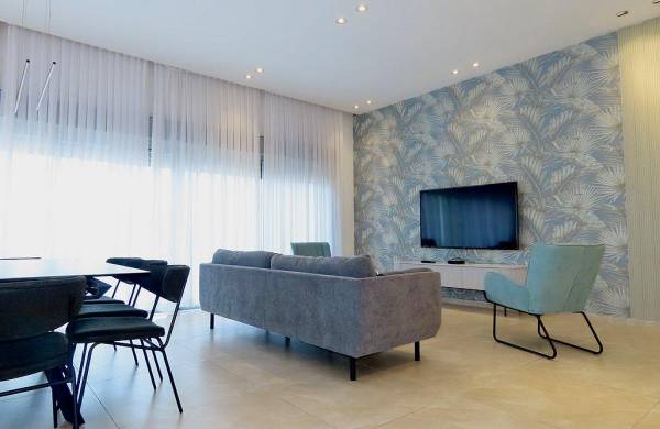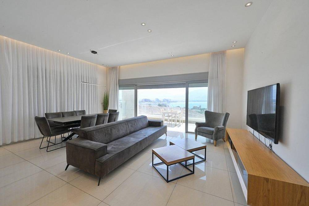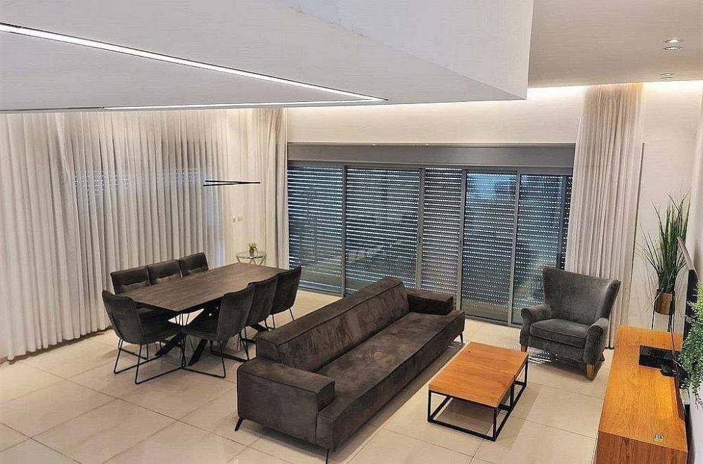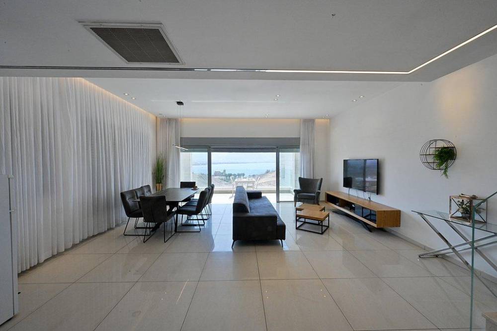 סלון מרווח עם מערכת ישיבה נוחה וטלוויזיה
