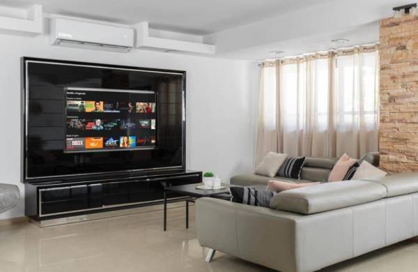 - סלון מרווח עם מסך טלוויזיה בגודל 65 אינץ'