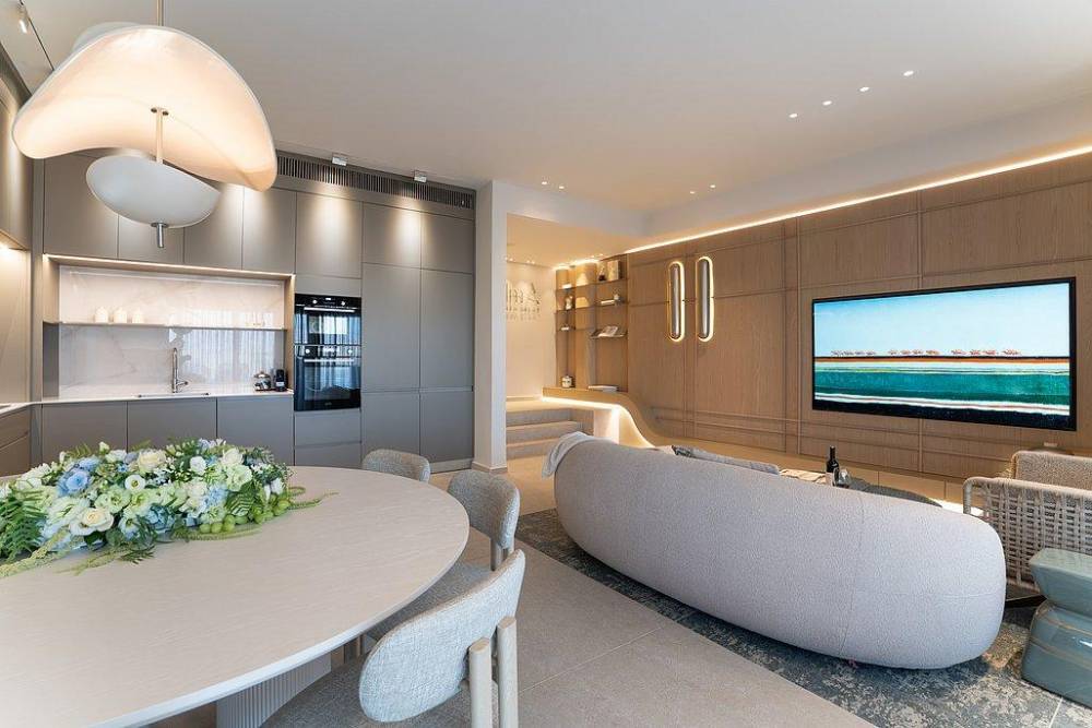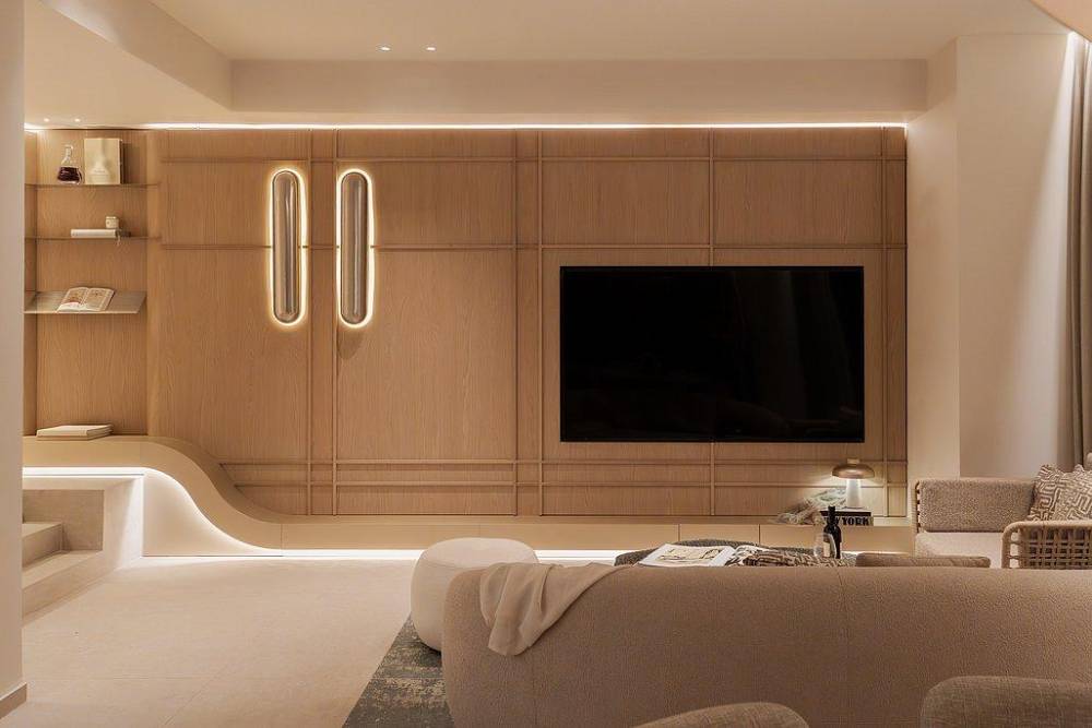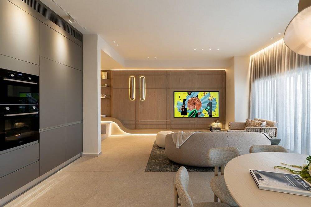 סלון מעוצב הכולל טלויזיה חכמה 85 אינץ'