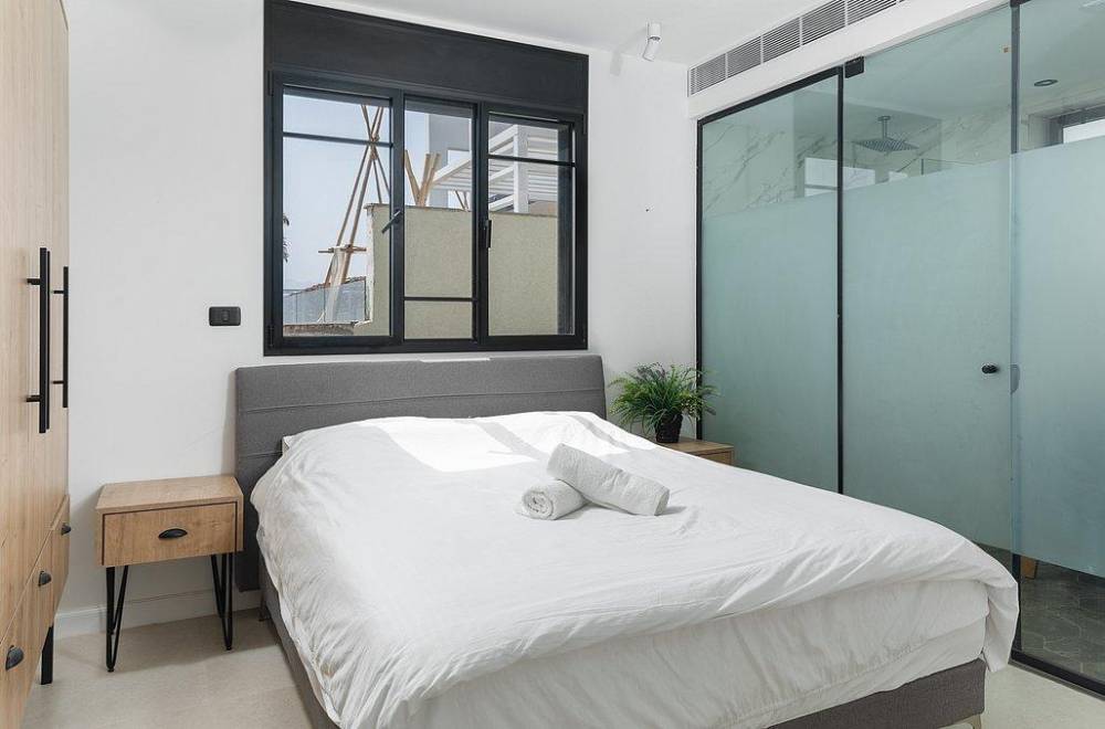 מיטה זוגית, מיזוג אוויר, מסך צפייה, פינת ישיבה, מטבחון וחדר רחצה