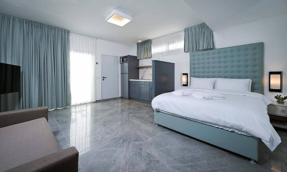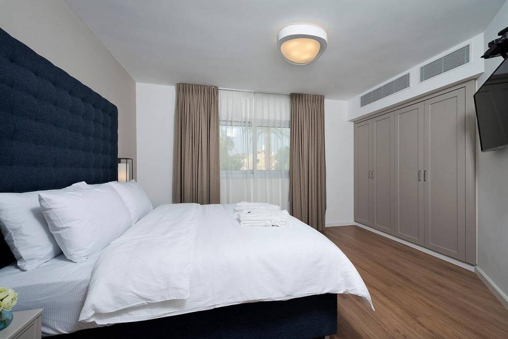 אבזור החדרים: מיטה זוגית גדולה , שידה, מיזוג אוויר, טלוויזיית LCD