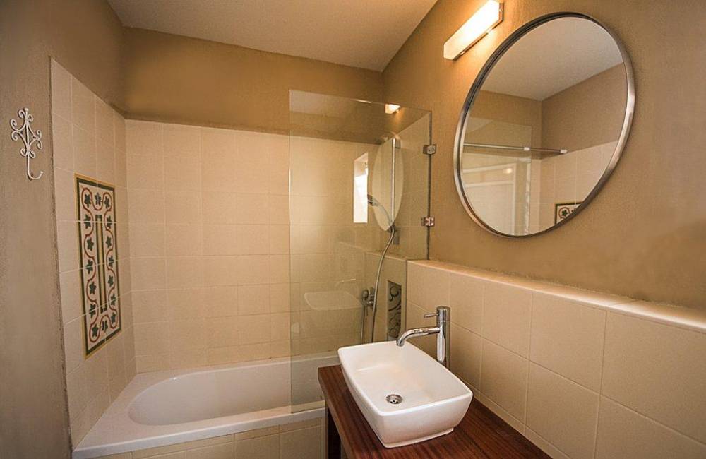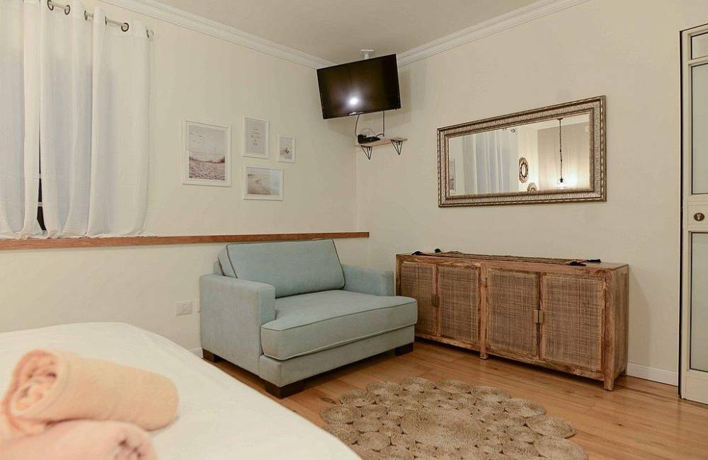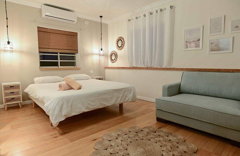 הסוויטה המרכזית כוללת גם חדר רחצה ושירותים פרטיים וספה נפתחת למיטה זוגית נוספת.