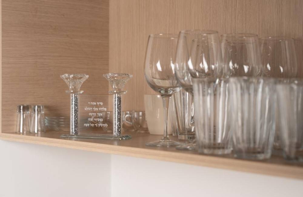מטבח מאובזר קומפלט הכולל אי ומכיל: מקרר, מקפיא, תנור אפיה, מכונת אספרסו,כיריים חשמליות, קומקום חשמלי, מיקרוגל, כלי אוכל והגשה.