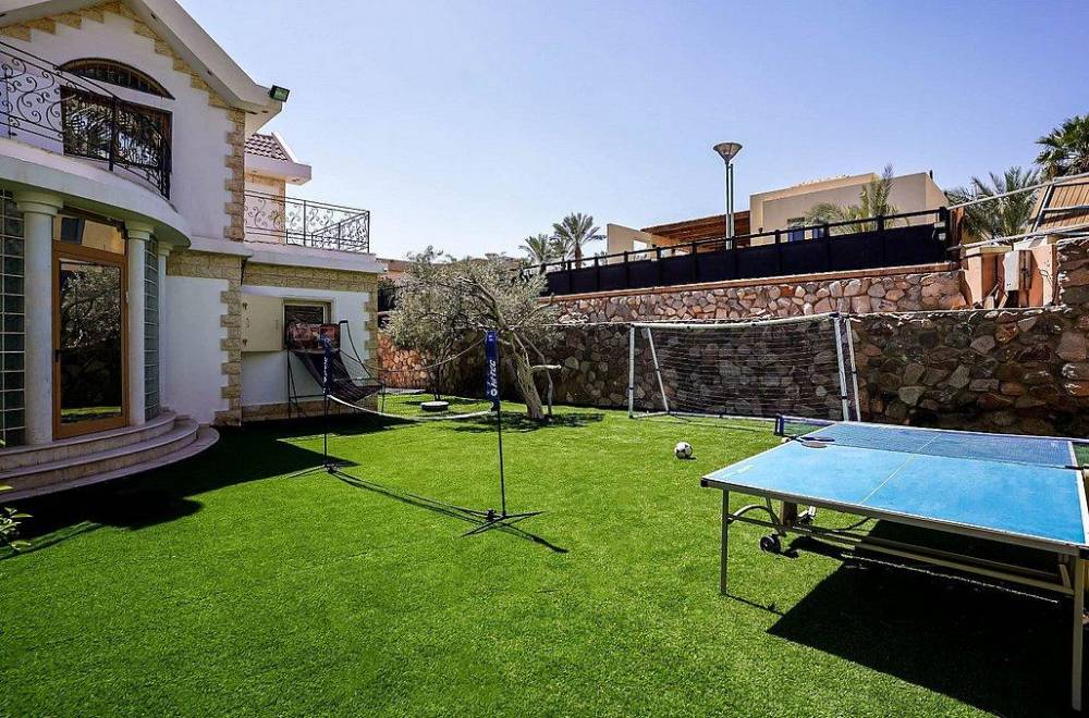 החצר עם בריכה גדולה ופינג פונג וסנוקר שהילדים מאוד אהבו.