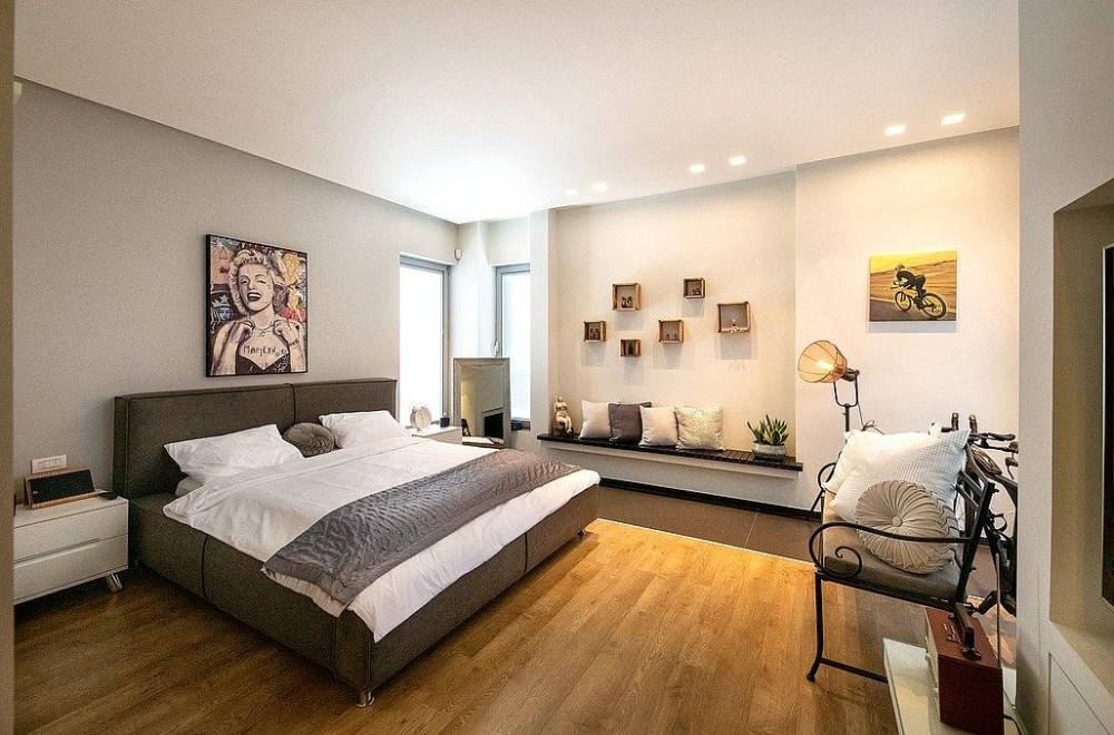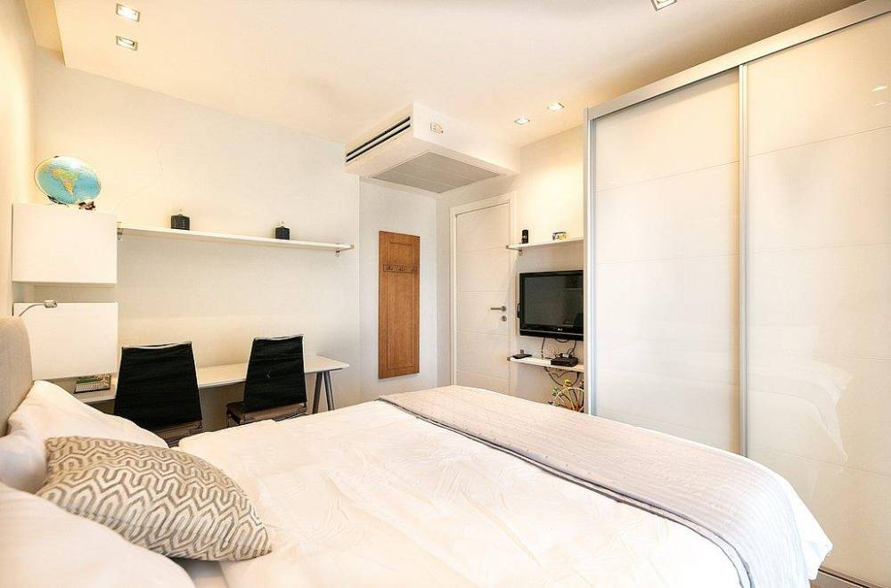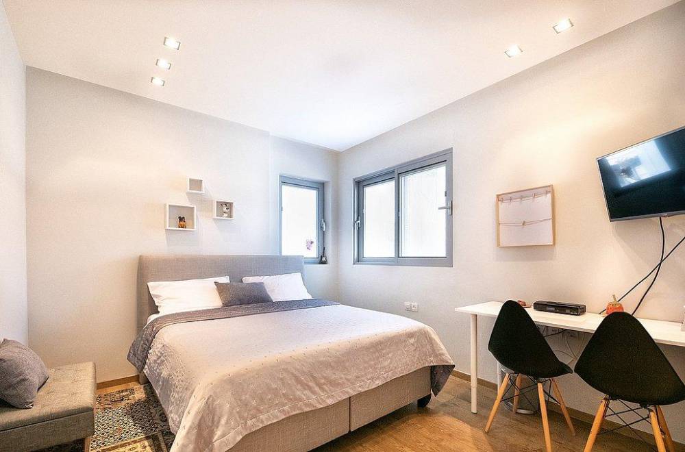 מיטה זוגית מוצעת, מזגן, LCD, שידות