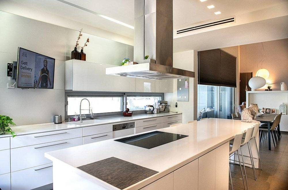 מטבח הוילה כולל: מקרר, מיקרוגל, כיריים חשמליות, כלי אוכל והגשה, מכונת קפה, מתקן מים, מדיח כלים ותנור אפייה