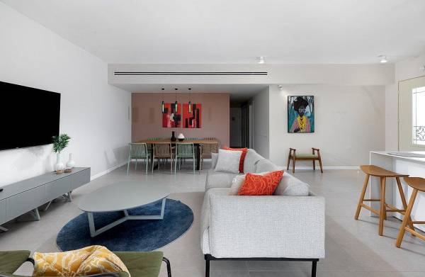 סלון רחב ידיים עם מסך LCD בחיבור לכבלים