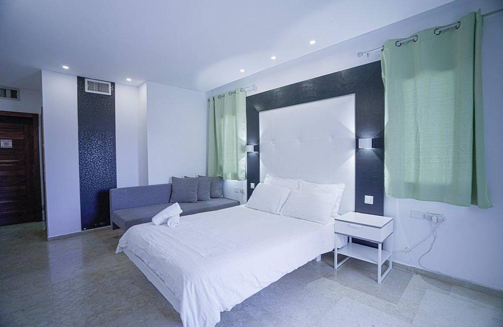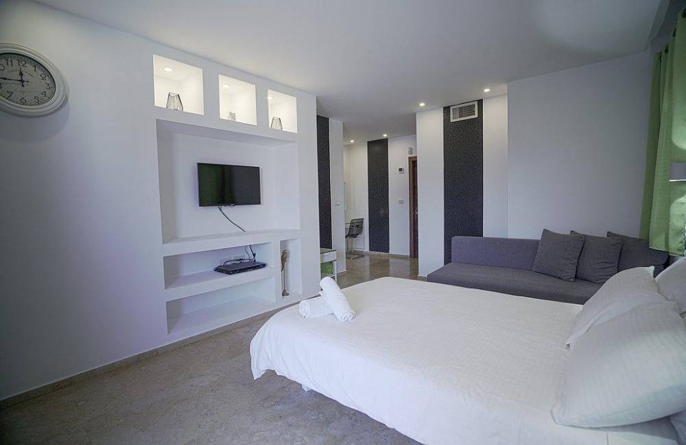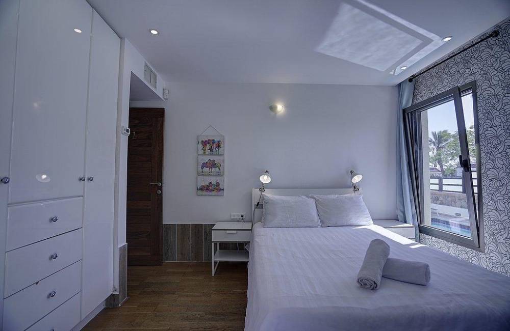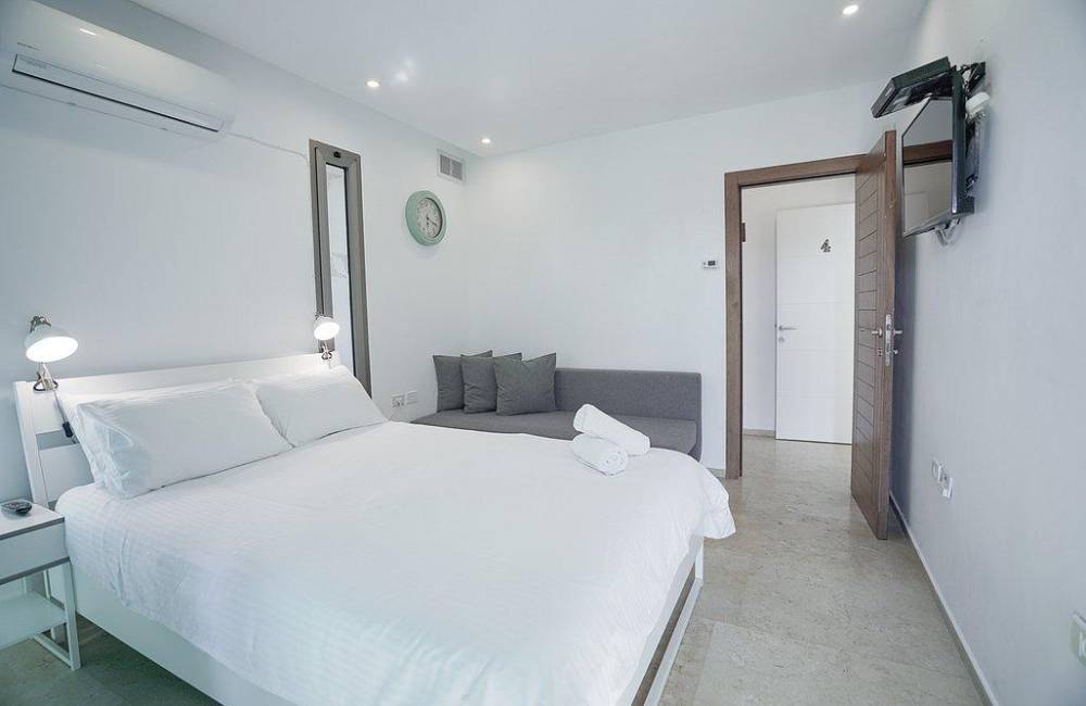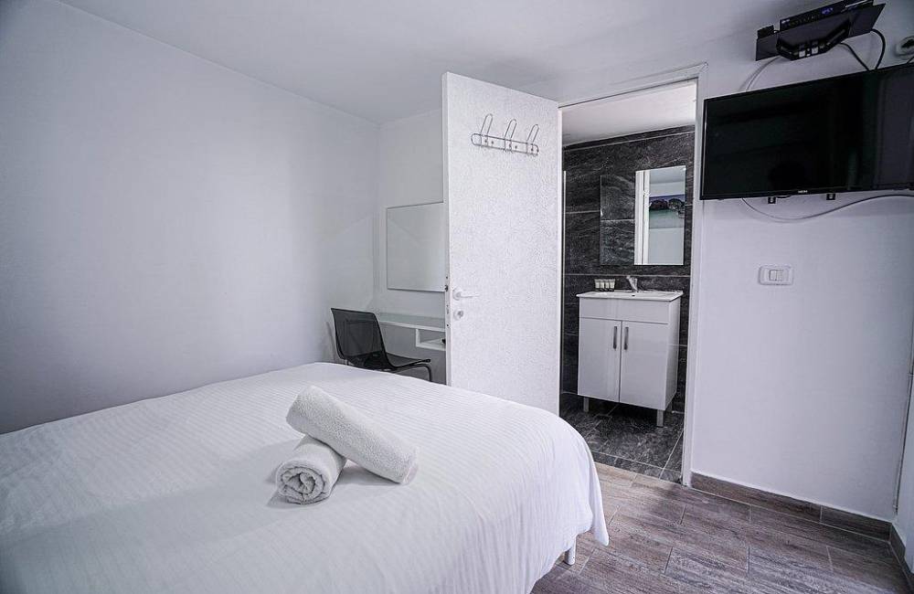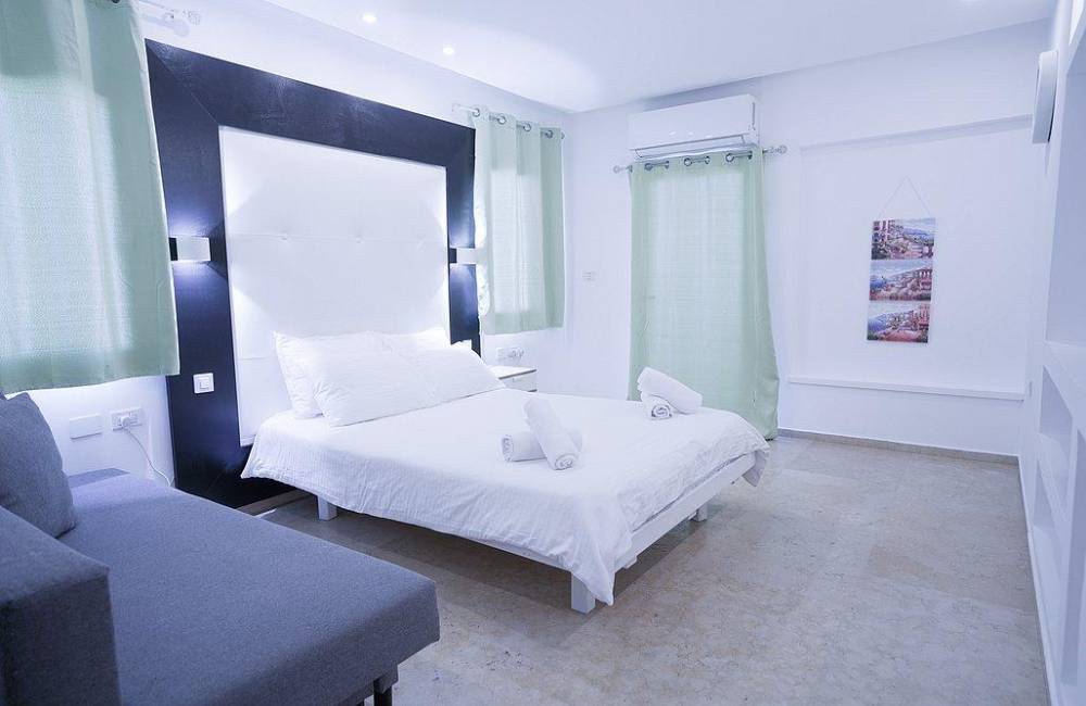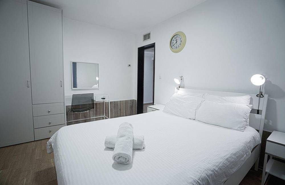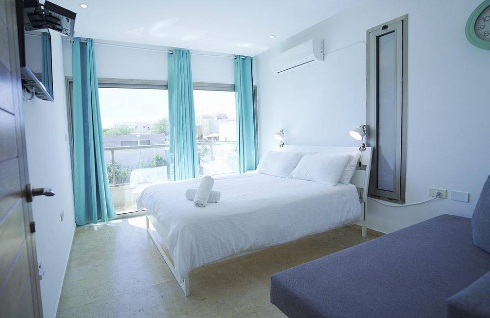 מיטה זוגית נוחה, מזרן אורתופדי, שידות, מיזוג אוויר, מצעים וכלי מיטה, מקרר מיני, מסך בגודל 32 אינץ
