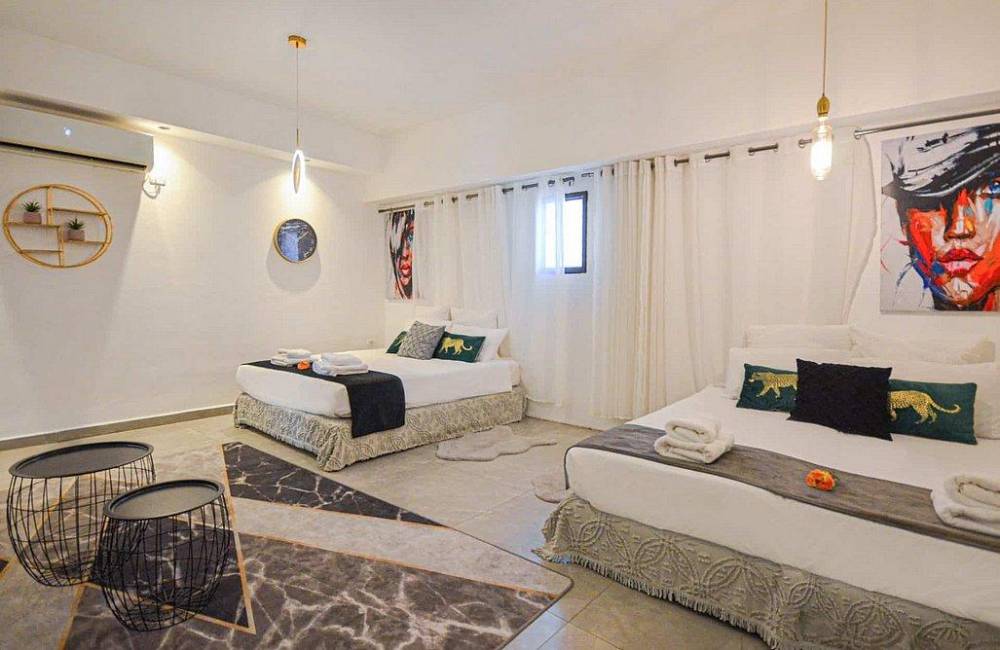חדר שינה 2: כ-2 מיטות זוגיות, ספה נפתחת, מסך ציה שידה, מזגן