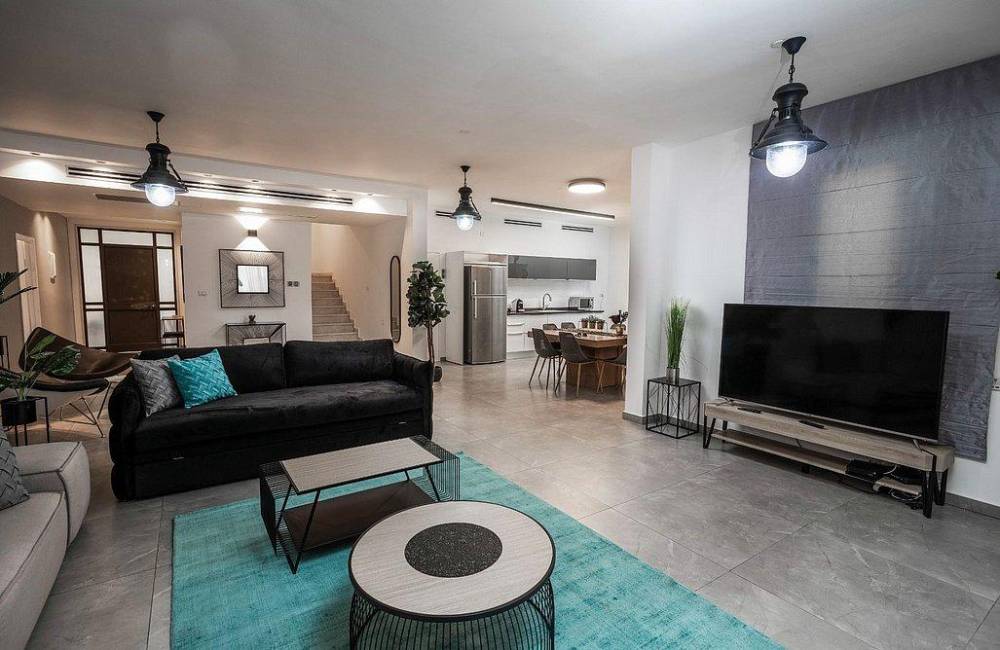 סלון + מסך טלוויזיה עם חיבור ל-HOT וולנטפליקס