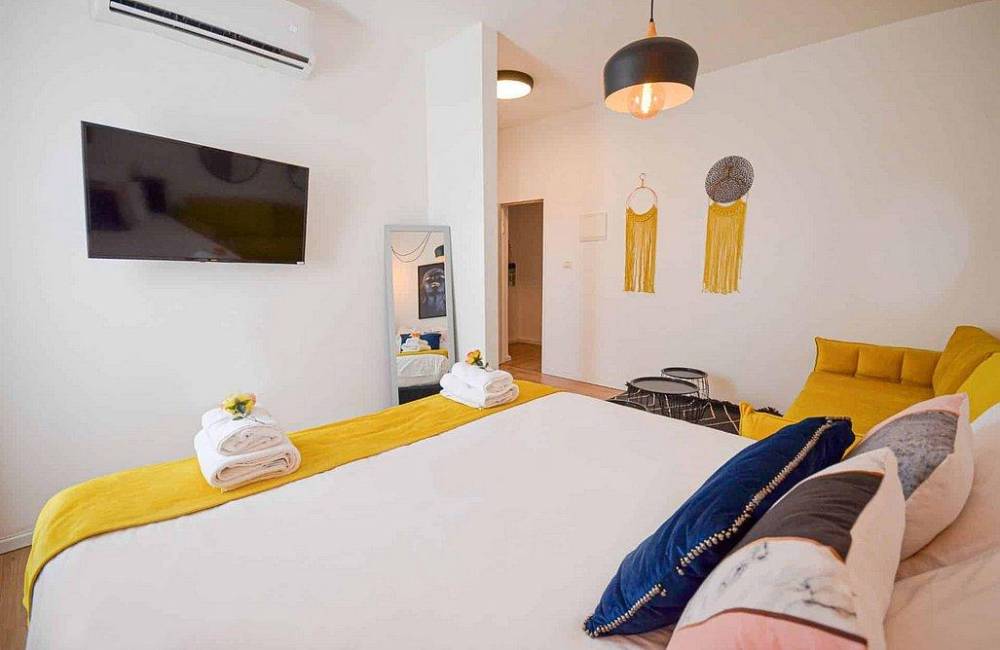 חדר שינה 4: מיטה זוגית, ספה נפתחת, מיזוג אוויר, שידה וטלוויזיה