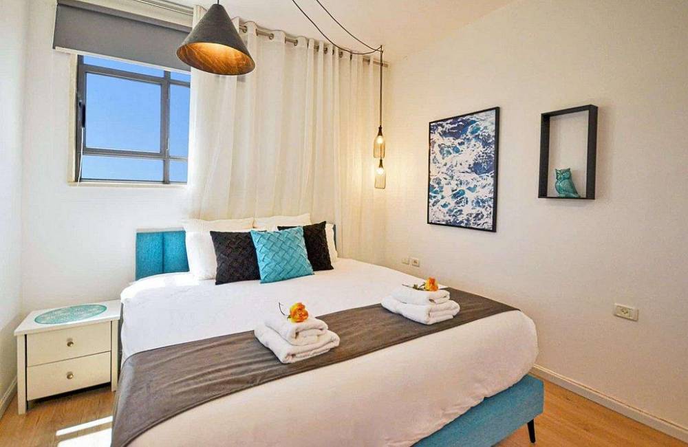חדר שינה 1: מיטה זוגית, מסך צפייה, שידה, מזגן