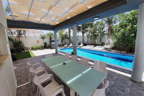 וילה מפוארת המתפרסת על פני 800 מטר. בוילה: 8 חדרי שינה הפזורים על פני 3 מפלסים. מטבח מאובזר, פינת אוכל גדולה, סלון, פלאזמה ענקית ומתחם חיצוני הכולל: בריכת שחייה מחוממת ומקורה מפנקת, מיטות שיזוף, ספות רביצה, שולחן סנוקר, ערסל, ריהוט גן איכותי, פינת מנגל ועוד.
