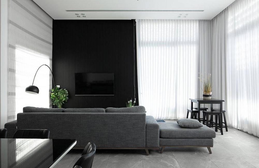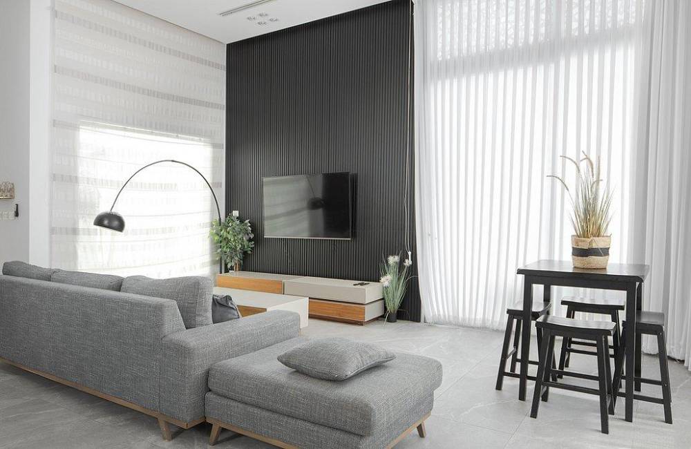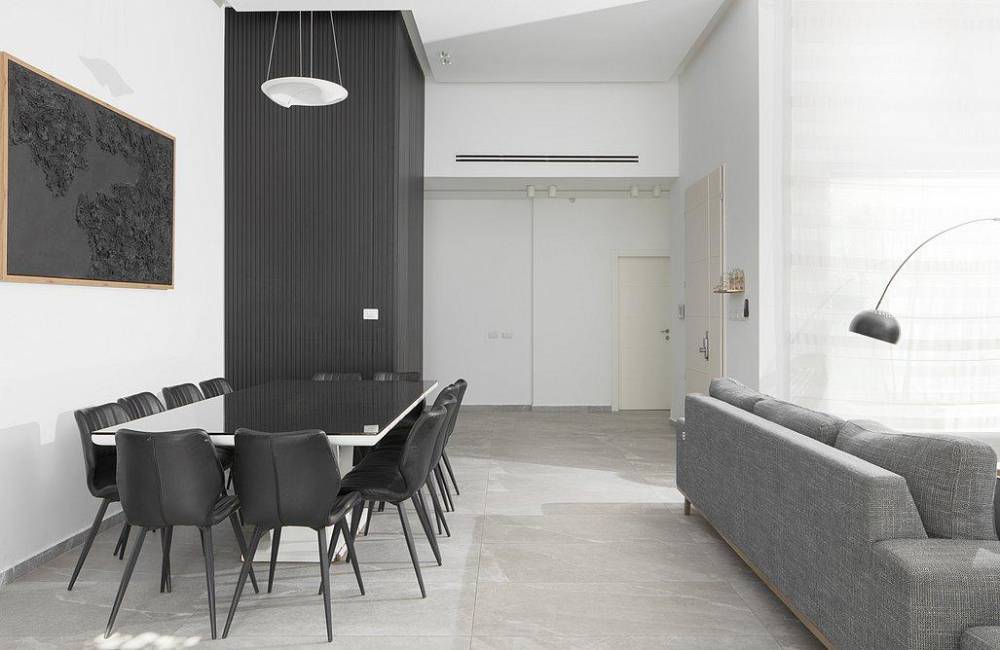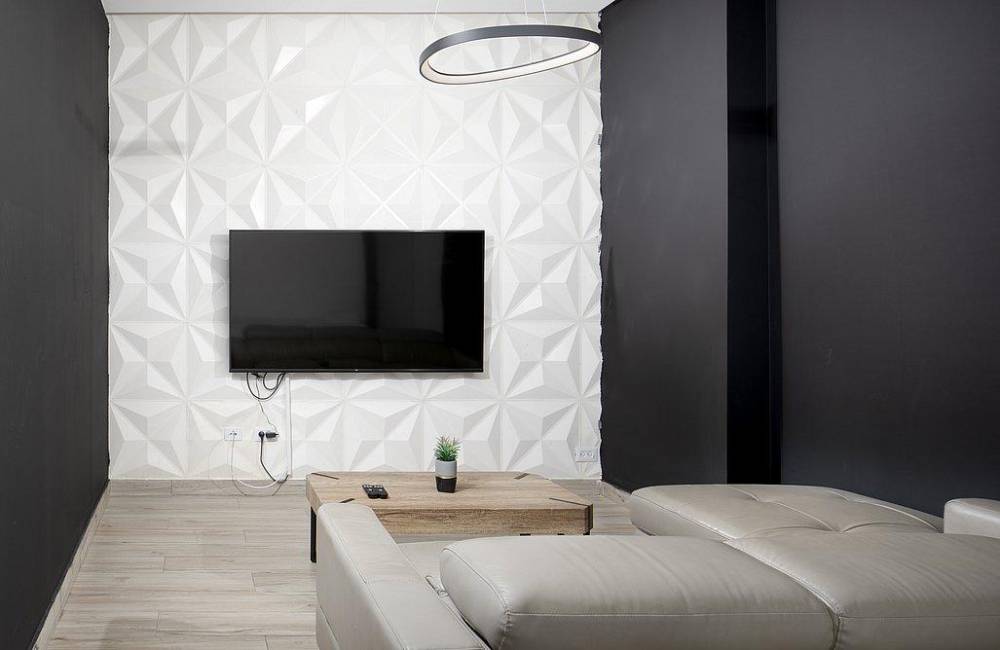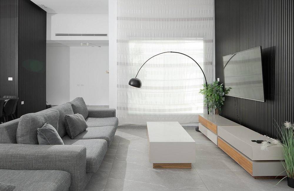 סלון יוקרתי מעוצב אל מול מסך LCD עם חיבור להוט