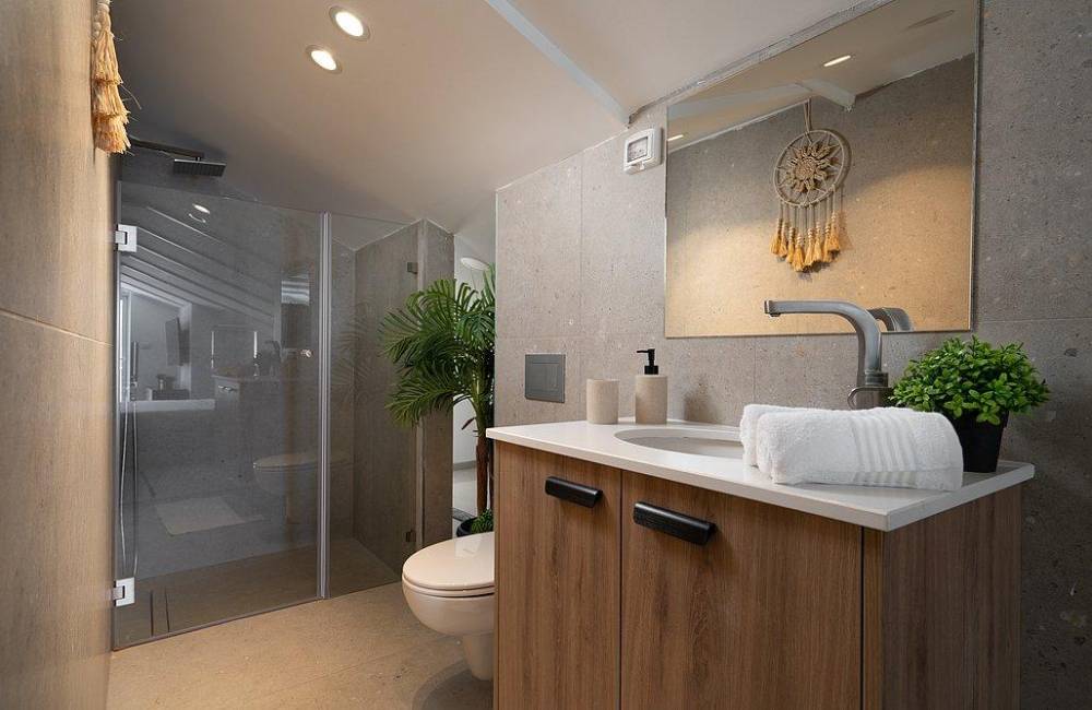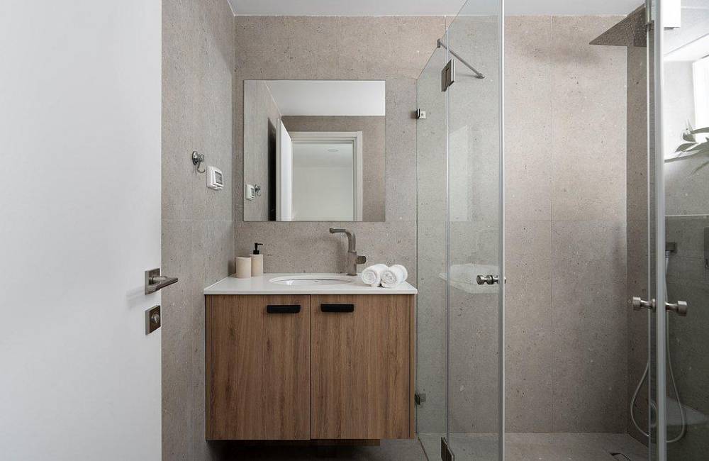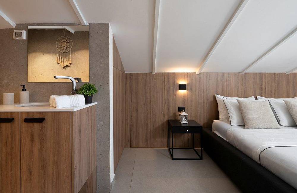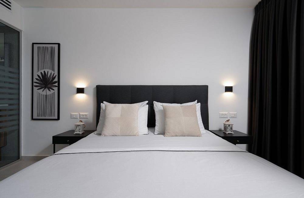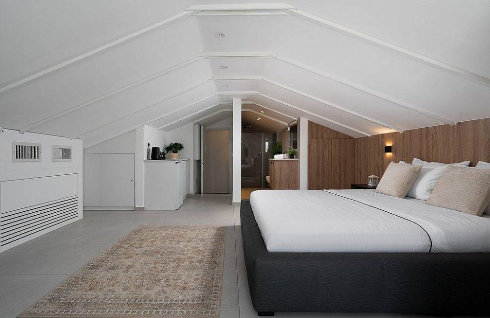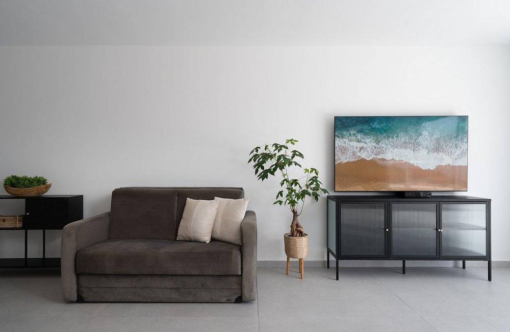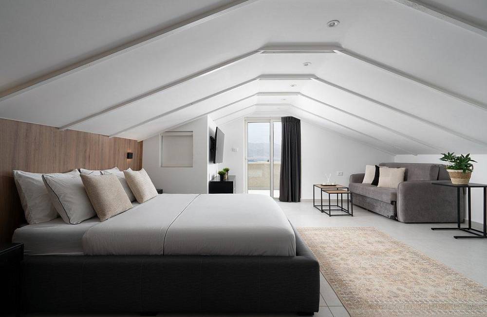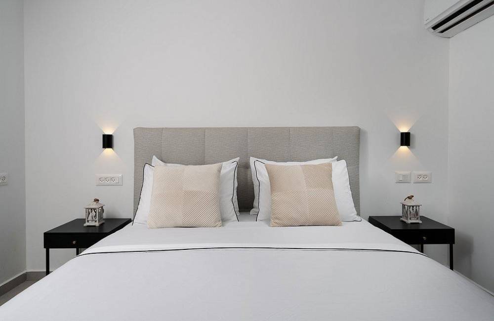 מיטה זוגית מוצעת, מיזוג אוויר, שידה, מסך LCD