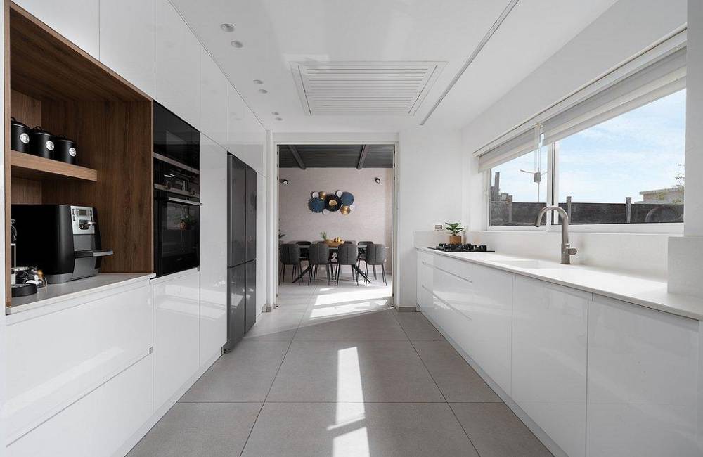 מטבח מאובזר הכולל: מקרר, מיקרוגל, תמי 4, תנור אפייה, כיריים גז