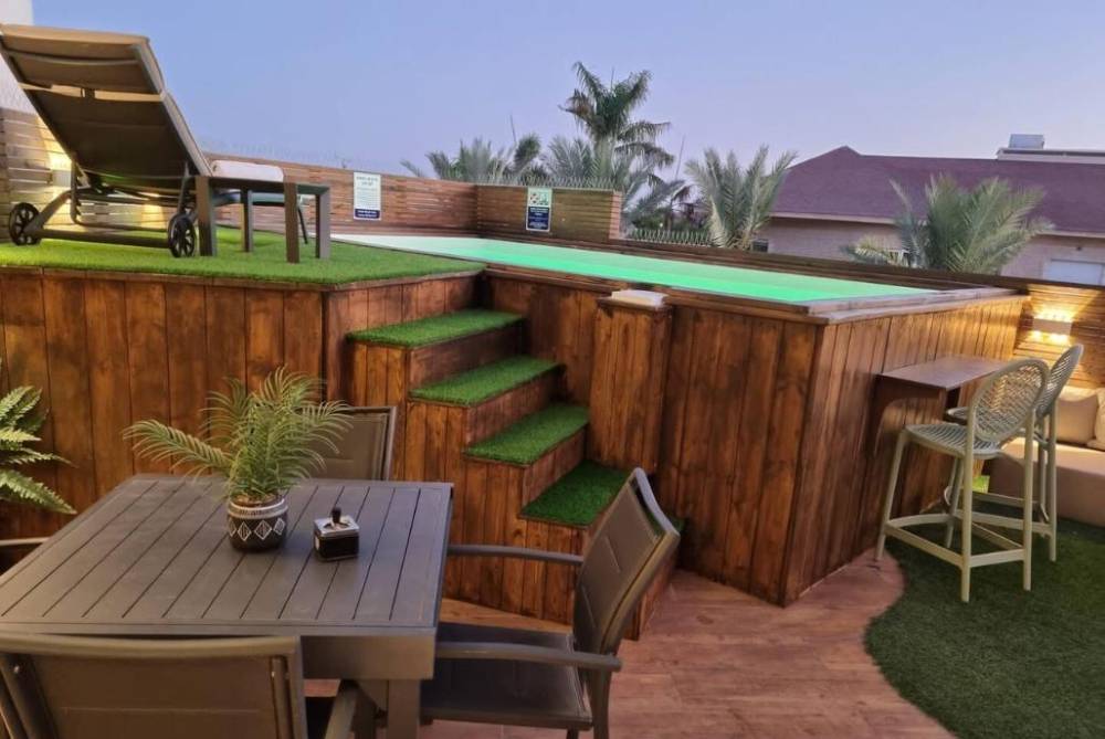 - מרפסת עם גינה גדולה, פינות ישיבה, מערכת ישיבה מפנקת, שולחן אוכל, פינת ברביקיו, ובריכה מחוממת גדולה.
