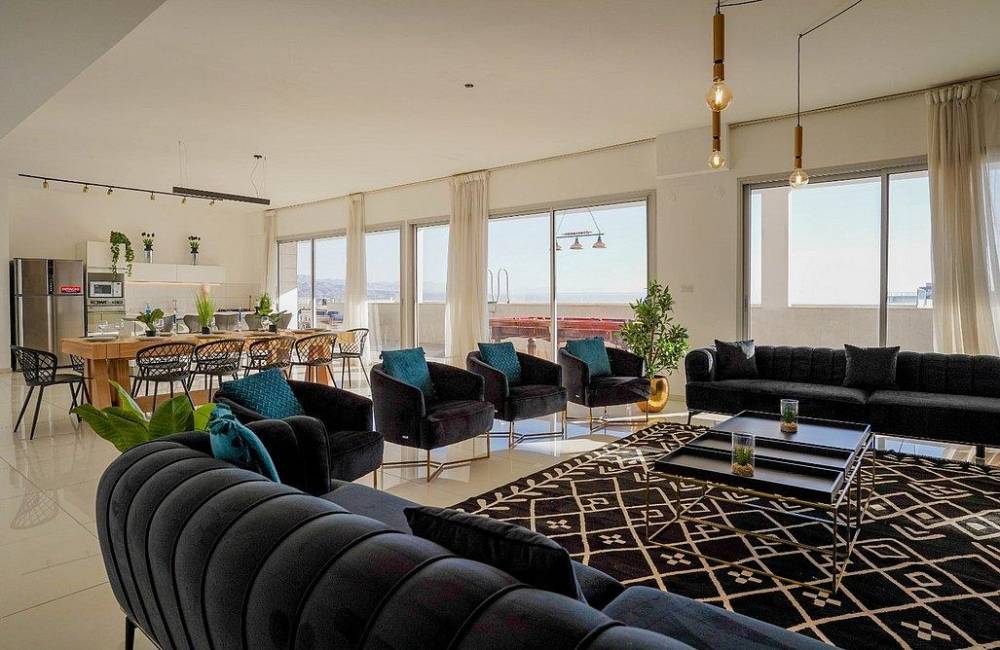 מול נוף השמים וחופי הים אנו גאים להציג בפינכם את הפנטהאוז המדהים שלנו מבית Yalarent באילת "פנטהאוז נוף שמיים" פנטהאוז מעוצב ויוקרתי בו תוכלו ליהנות מ-7 חדרי שינה מפנקים בעיצוב מרשים, סלון ומטבח מאובזר, אי לצד המטבח ופינת אוכל. בנוסף קיימת יצאת למרפסת נוף משגעת הכוללת בריכת שחייה גדולה מחוממת בחודשי החורף, פינת BBQ, שולחן סנוקר, ריהוט גן ונוף מדהים אל חופי הים. אם אתם מייחלים לחופשה שיש בה גם פינוק וגם נוף מדהים, מהרו עוד היום לחייג אלינו ולשריין מקום.