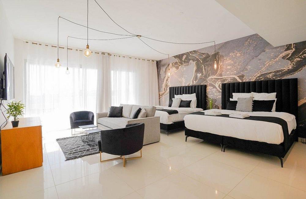 קיימים 3 חדרי שינה עם 2 מיטות זוגיות