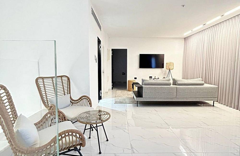 סלון יוקרתי + טלוויזיה חכמה עם מסך בגודל 85 אינץ