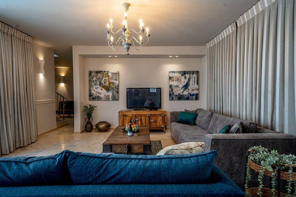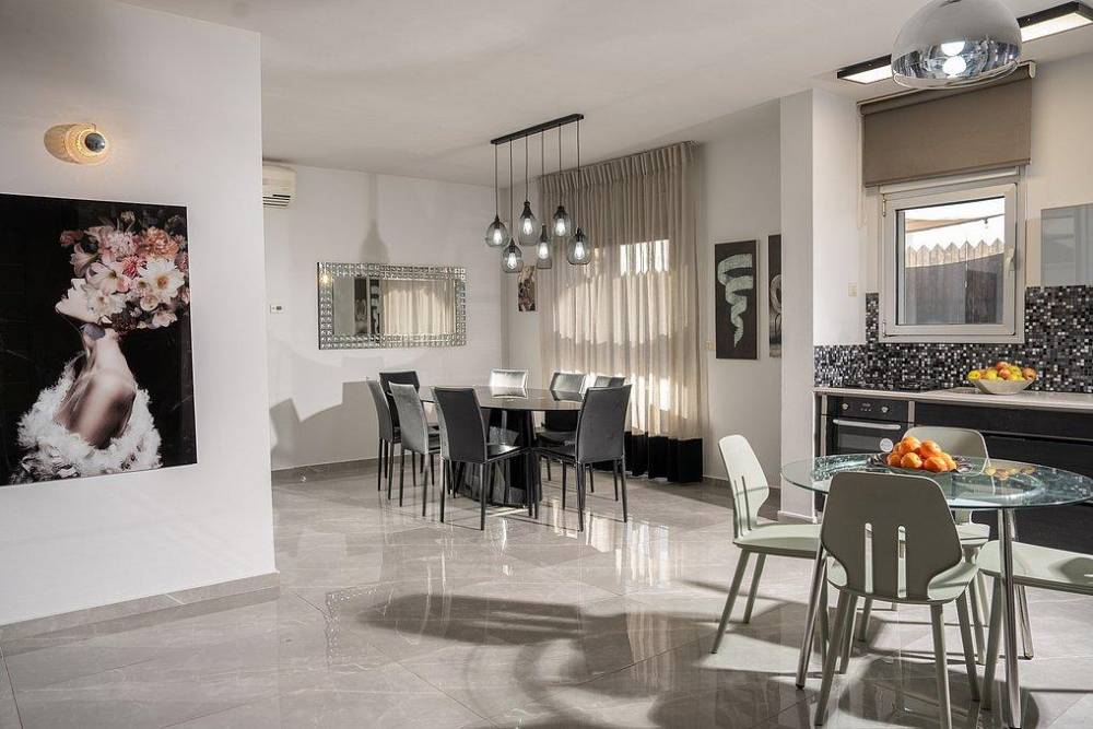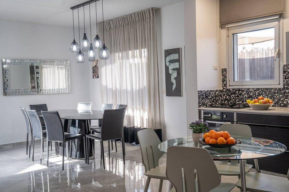 פנים הוילות מאובזר במערכות ישיבה מרווחת, פינות אוכל מעוצבת ומטבח מאובזר.