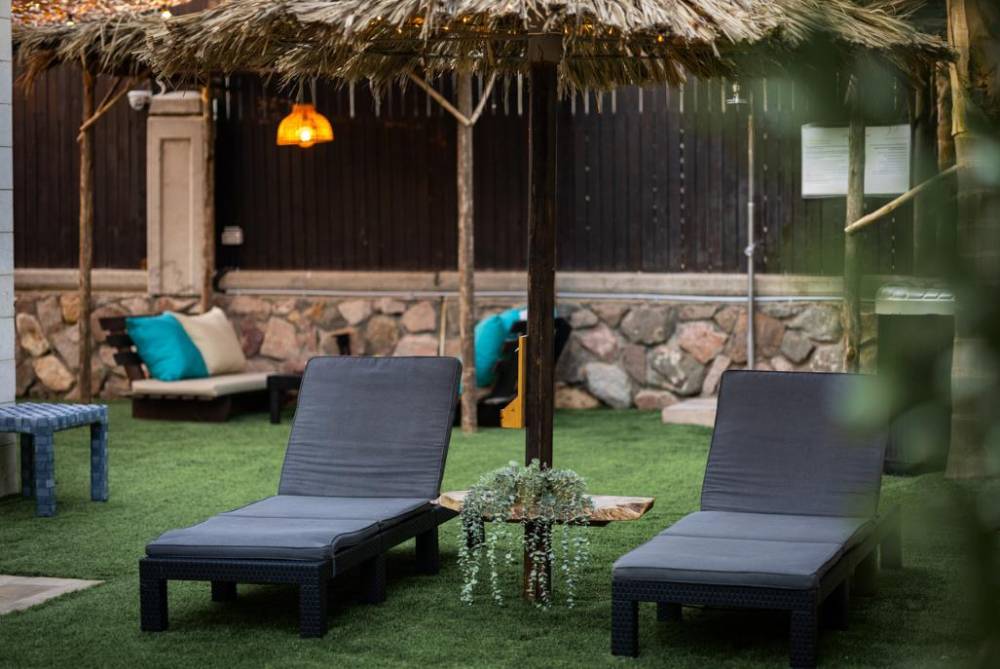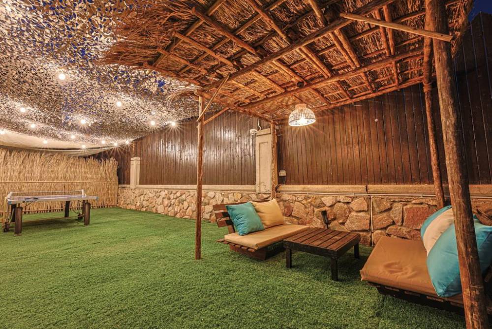 • מדשאה סינטטית עם פינות ישיבה מוצלות + תאורה לילית