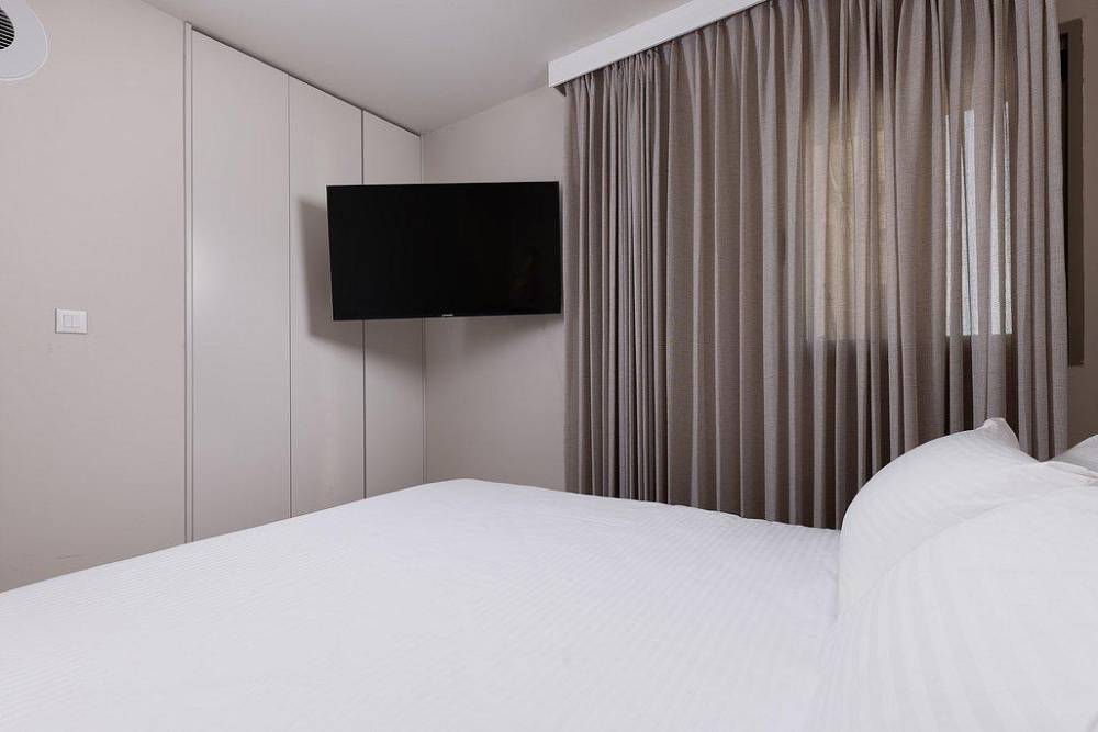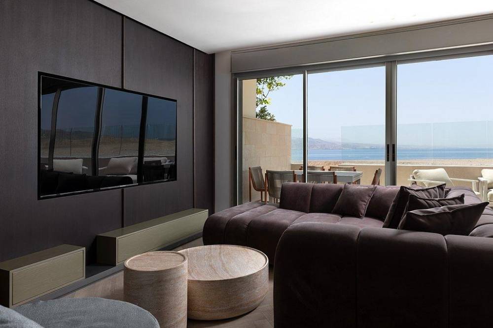 - סלון מעוצב עם ספה נפתחת, טלוויזיה חכמה וחבילת ערוצים בלוויין