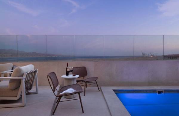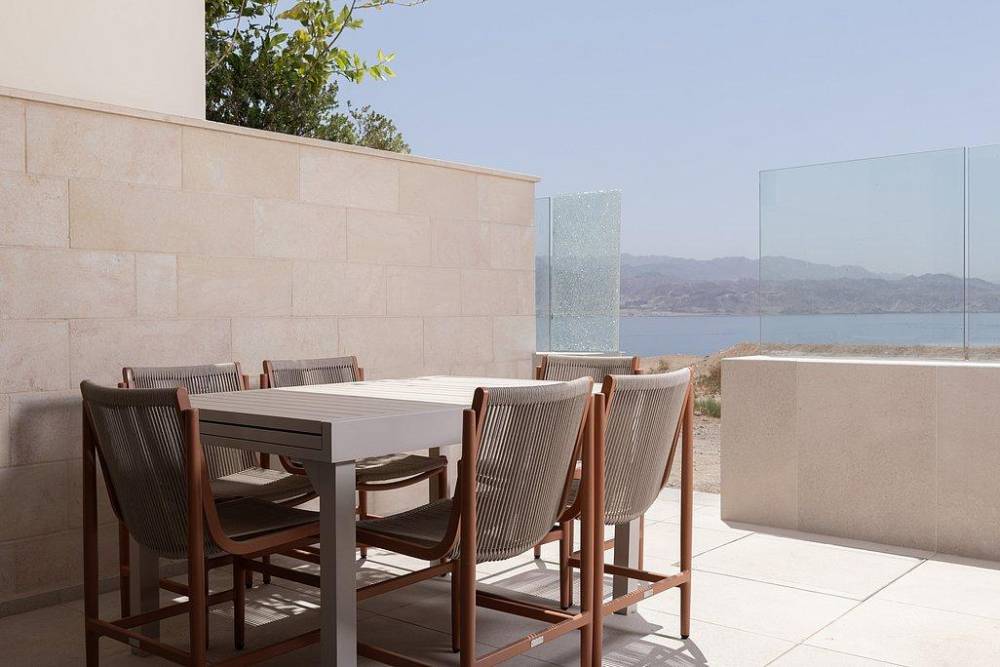 - מיטת שיזוף, ריהוט גן ופינת ישיבה מול נוף לים