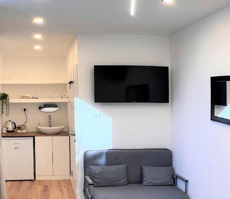 מיטה זוגית מוצעת, ספה נפתחת, מיזוג אוויר, מסך LCD, חדר רחצה עם מקלחון ושירותים, מטבחון הכולל: כיור, מקרר קטן וקומקום חשמלי
