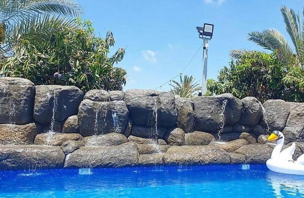 בריכת שחייה צלולה ומחוממת עם מפלי מים בגודל 8X4