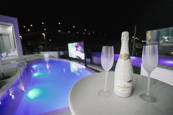 מתחם חיצוני הכולל: בריכה מחוממת, פינות ישיבה, מסך חיצוני SMART TV