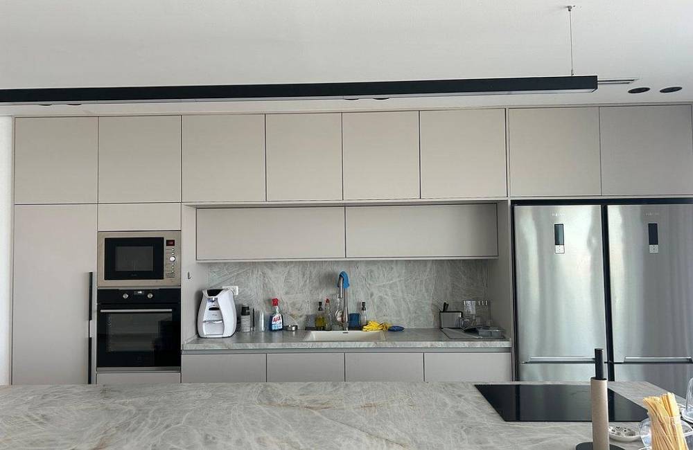 מטבח מאובזר: מקרר, מיקרוגל, תנור, מדיח, מתקן מים, כלי אוכל