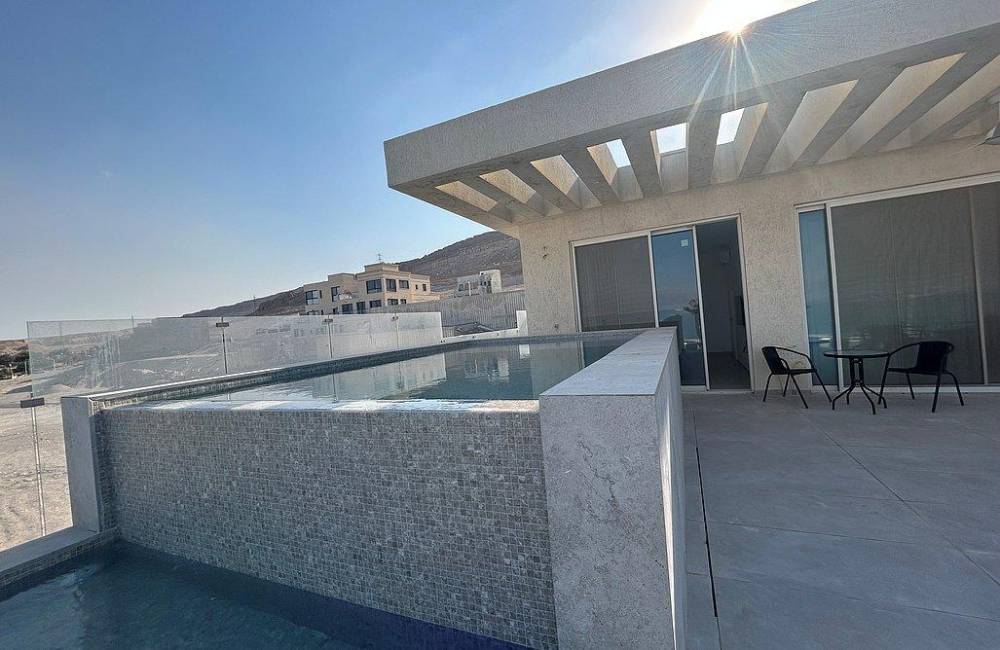 אירוח יוקרתי מול נוף עוצר נשימה בקו ראשון לחוף. וילת החוף בים המלח היא המקום המושלם לחופשה משפחתית, חופשת זוגות או אירוע קבוצתי באווירה שלווה מול נופי ים המלח.