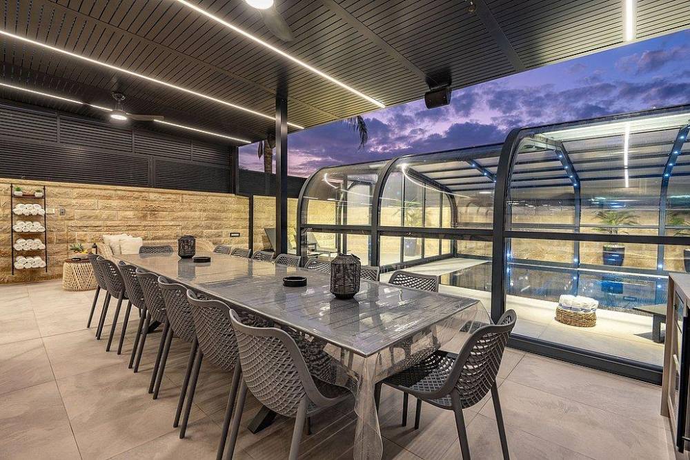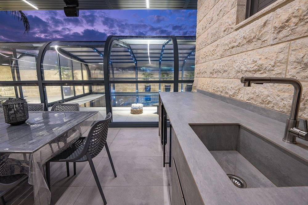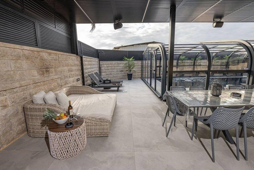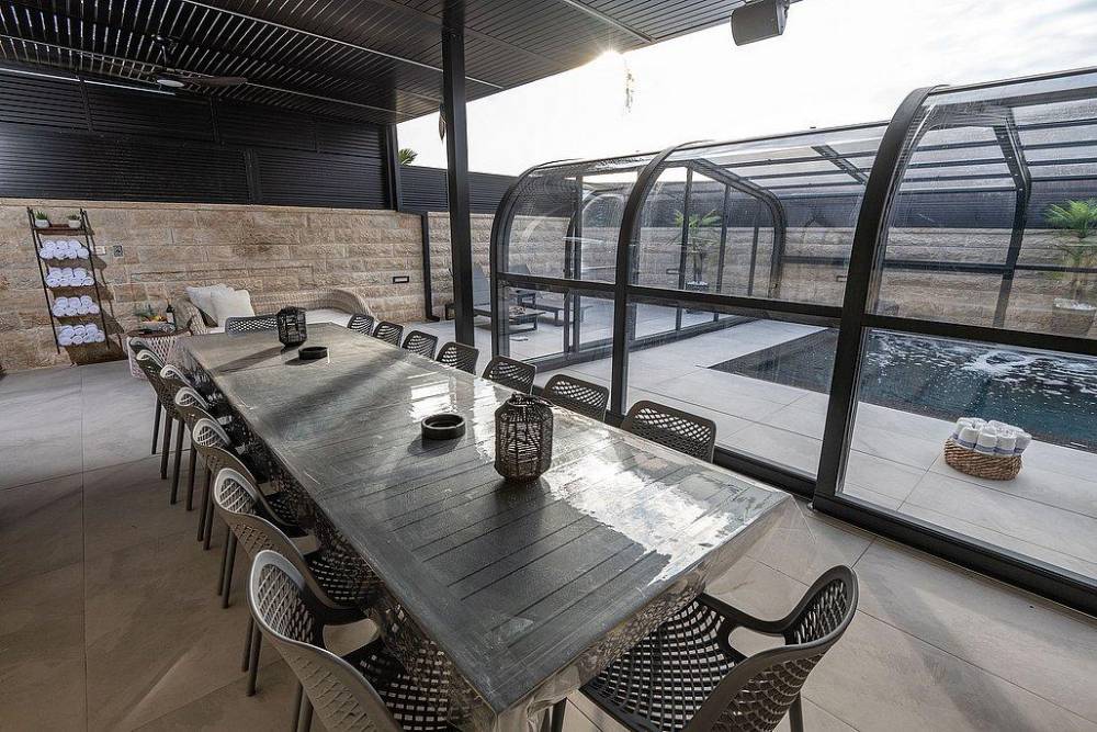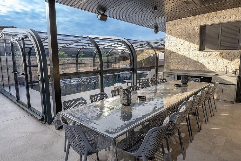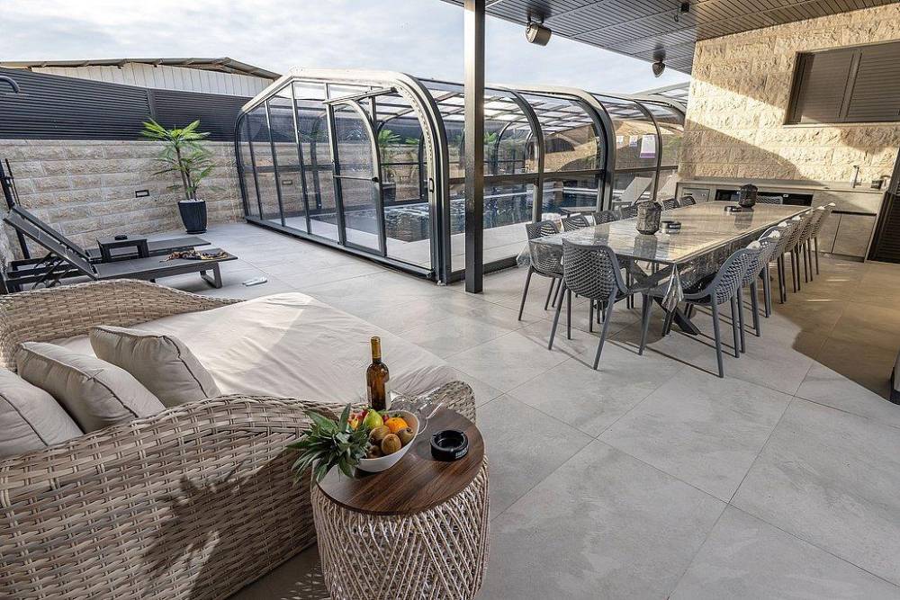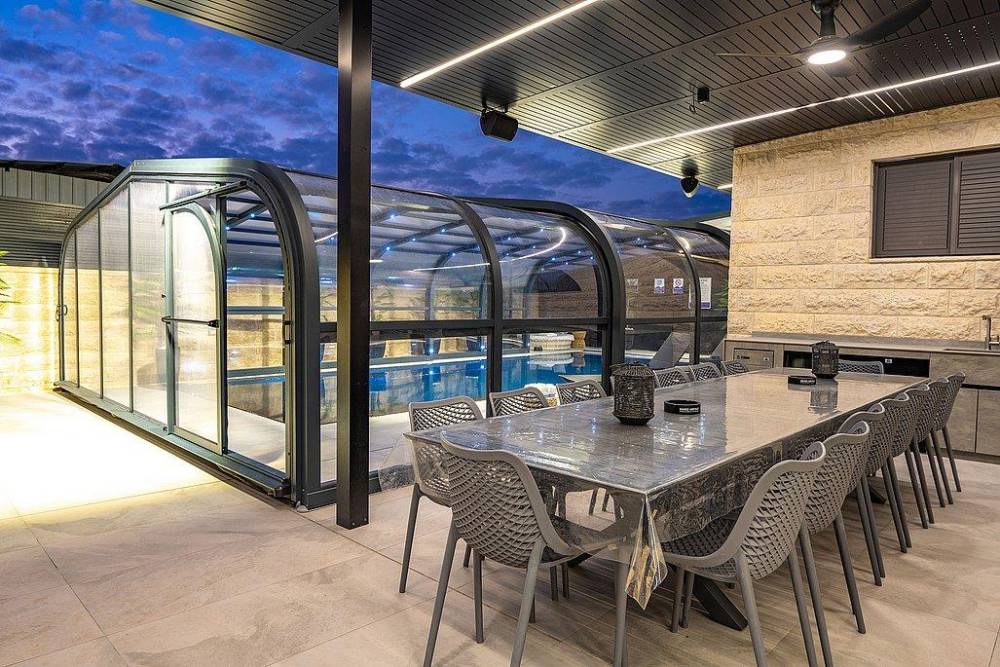בריכת שחייה גדולה ומחוממת בגודל 10X4 בקירוי מיוחד