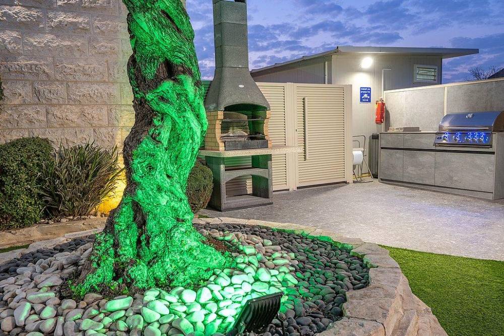 מטבח חוץ עם מקרר, כירת גז ומכונת קרח