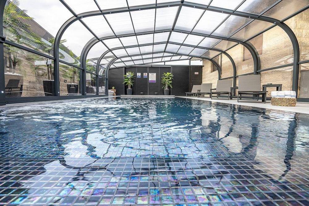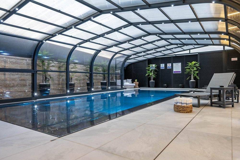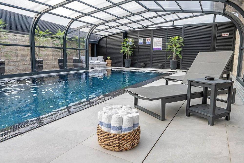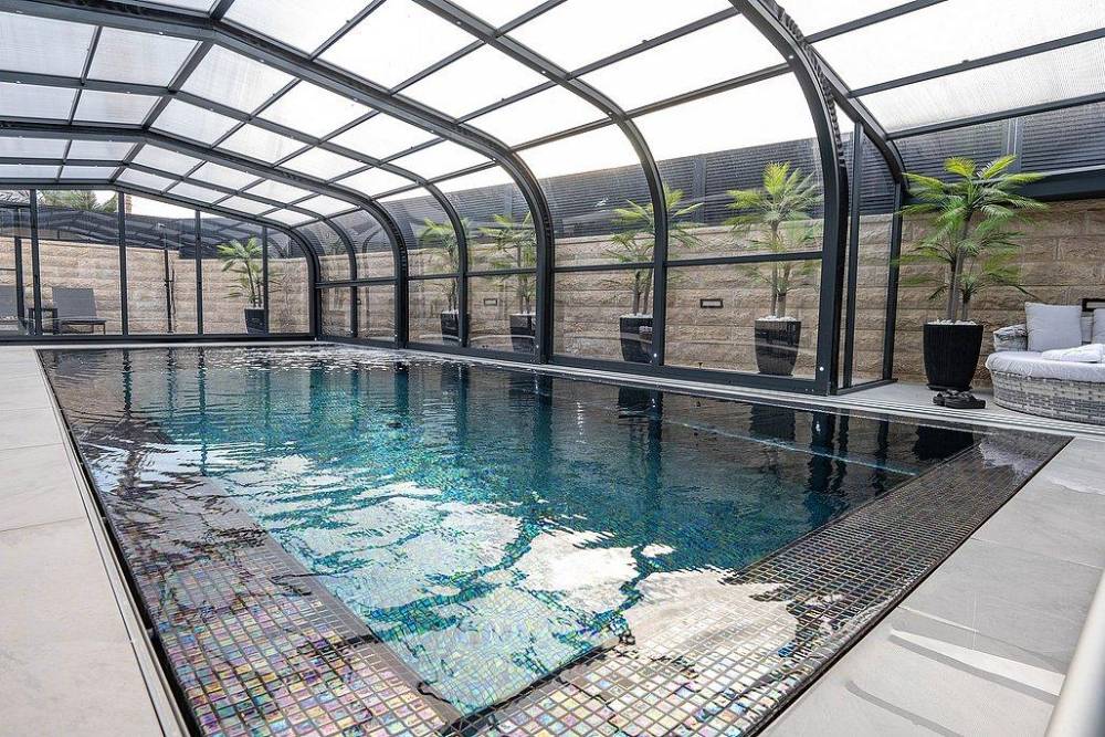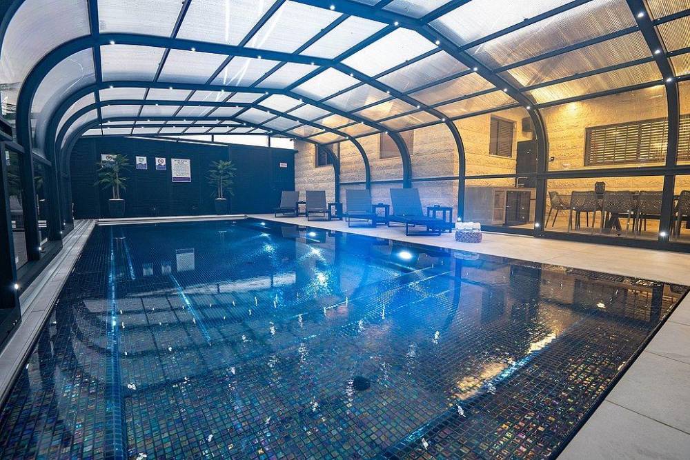 בריכת השחייה מחוממת ומקורה בקירוי מיוחד עבור עונת החורף