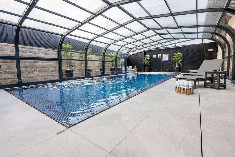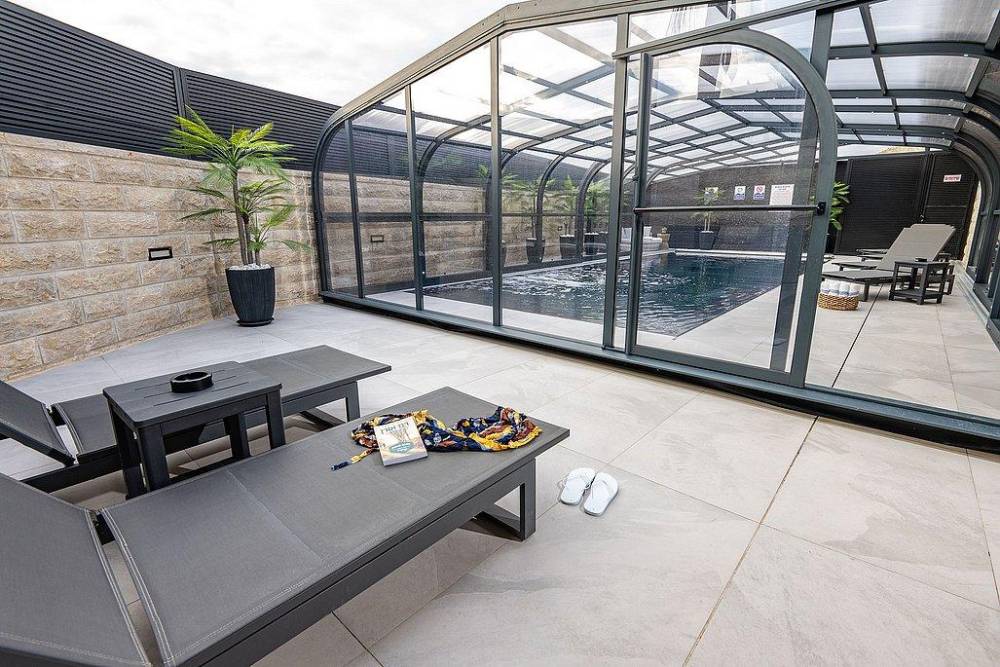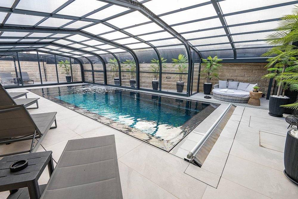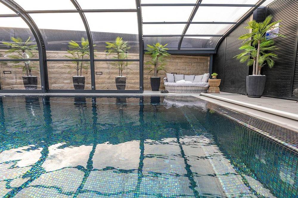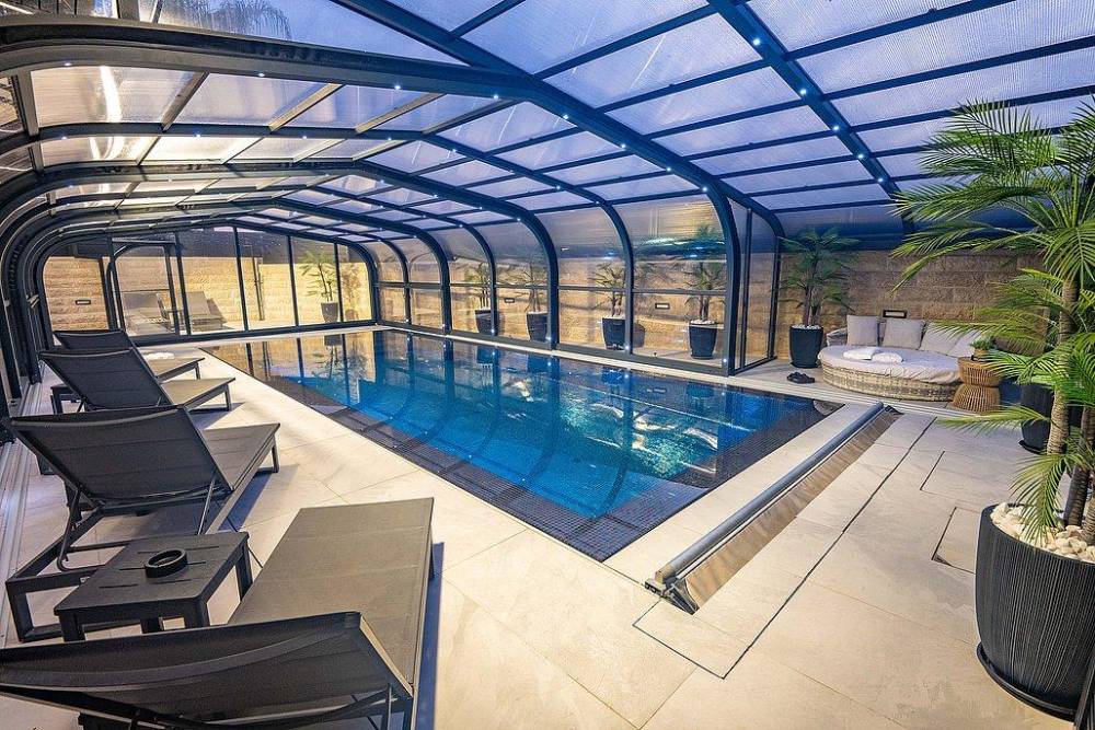 בריכת השחייה מחוממת ומקורה בקירוי מיוחד עבור עונת החורף