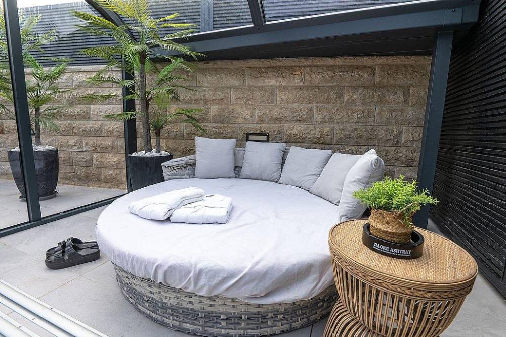 מיטות שיזוף, פרגולות ופינות ישיבה