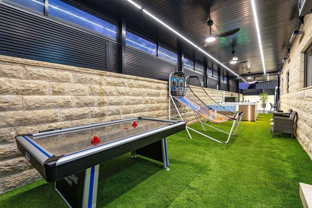 הרשו לנו להציג בפניכם את המתחם הכי שווה שיש "אחוזת ליאור בגפן" גן עדן למשפחות במתחם שיש בו פשוט הכל! מתחם גדול לנופש ואירוח עם סך הכל 7 חדרי שינה, מטבח מאובזר, סלון רחב ידיים ויציאה לחצר קסומה עם מגוון משחקי שולחן לכל המשפחה, בית עץ עם מגלשה לילדים, בריכת שחייה גדולה מחוממת, ג'קוזי ספא מפנק, חצר מרהיבה מעוצבת עם מגוון עצי נוי ועוד מגוון אטרקציות שינעימו לכם את החופשה.