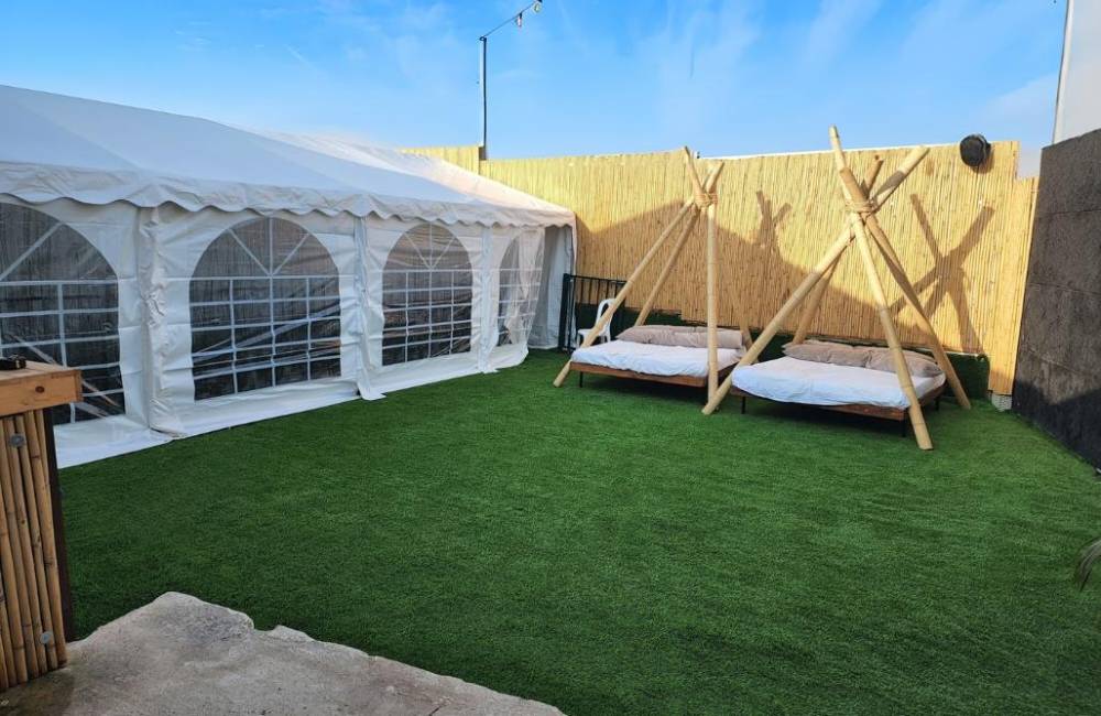 יש מקומות ישיבה בחוץ ובפנים, ערסלים, מיטת שיזוף, מדשאות.