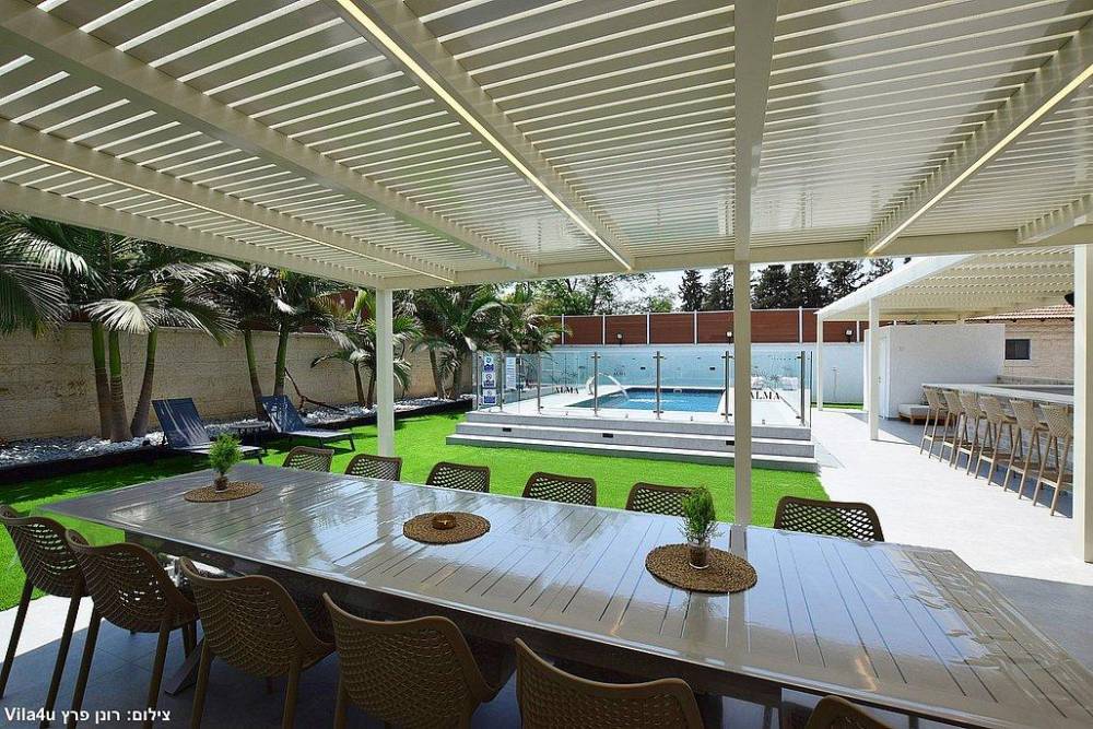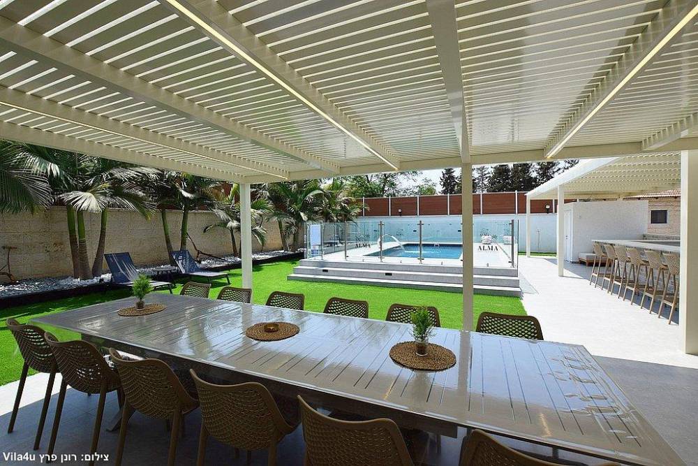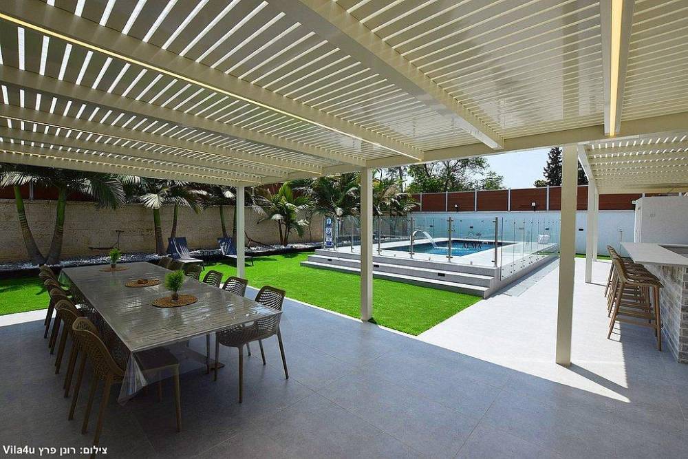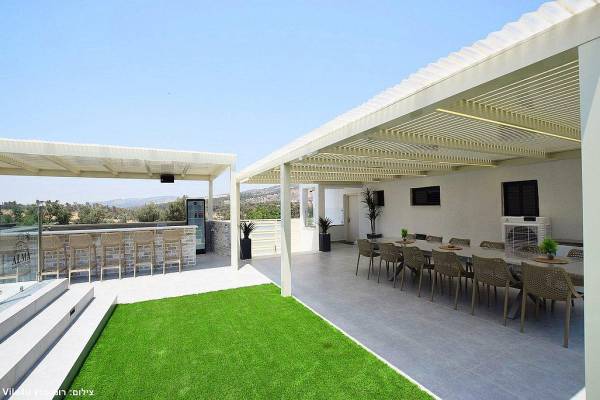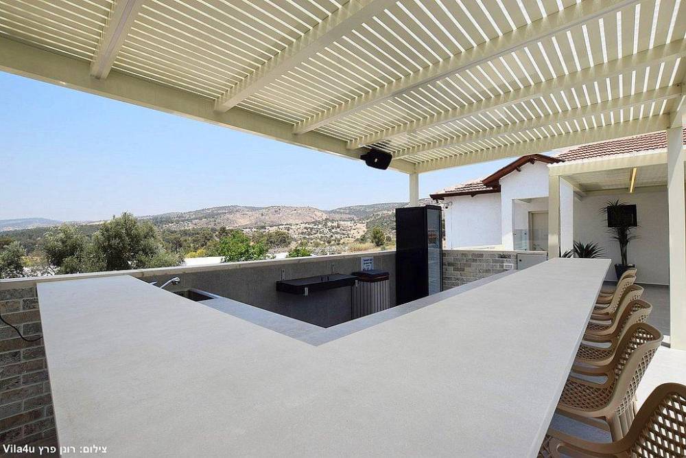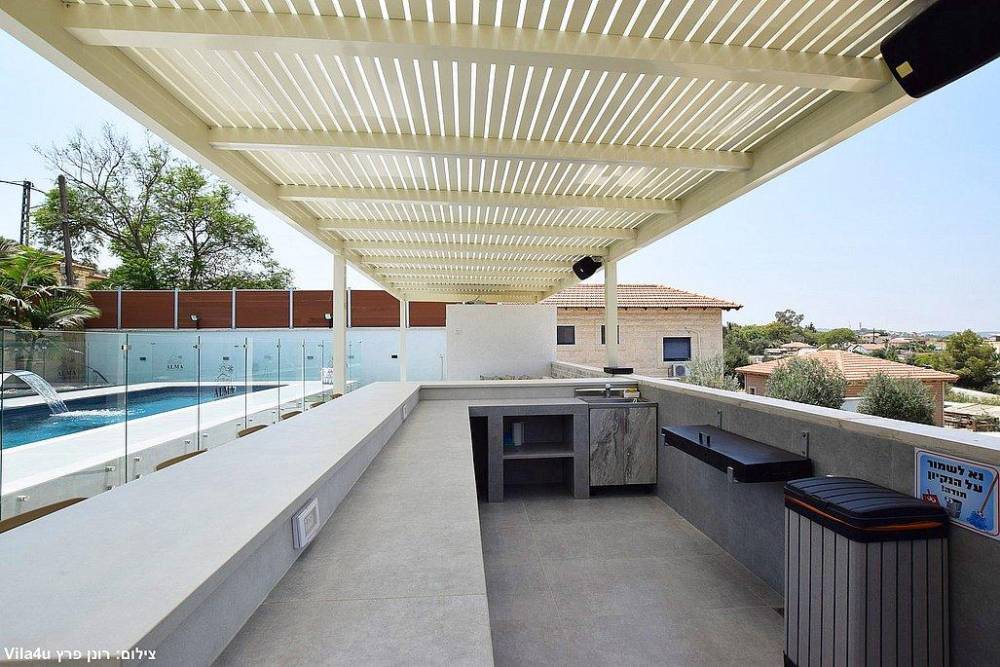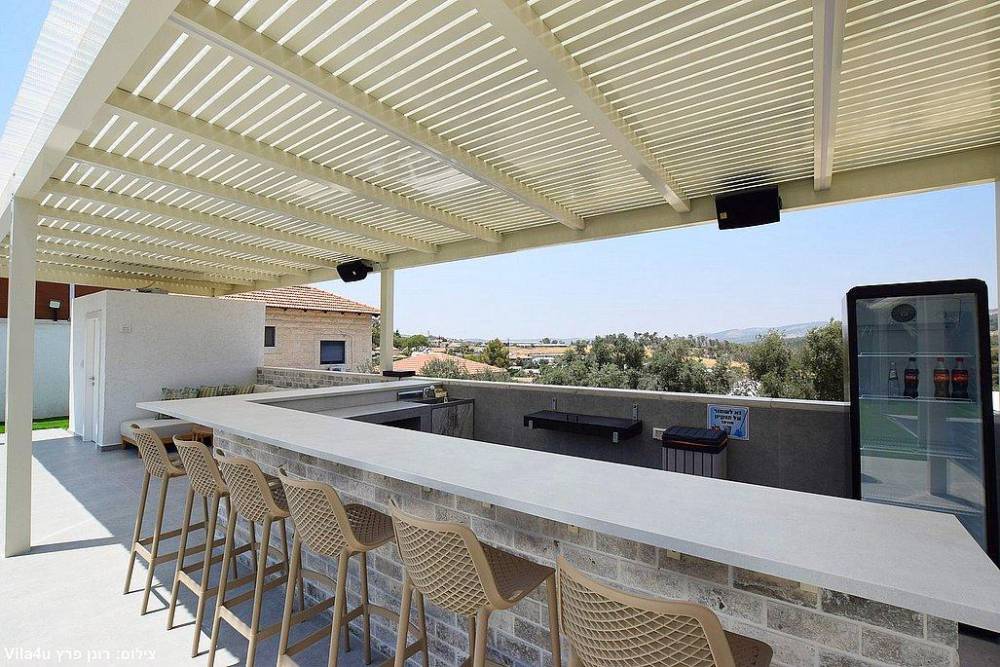 הוילה ואוו !! חשבו על כל פרט ופרט בהשקעה רבה. בריכה בסטנדרטים הגבוהים ביותר. מטבח חוץ מאובזר עם עמדת מנגל בגובה אדם, עמדת בישול על גז, מקרר ומקפיא ובר ענק עם מערכת שמע מובנית ואיכותית.