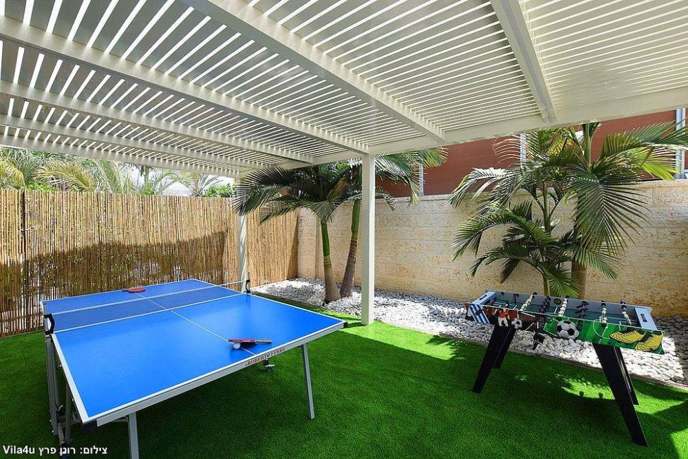 בחצר הוילה יש גם שולחן סנוקר חדש ומקצועי, שולחן פינג פונג ועוד.