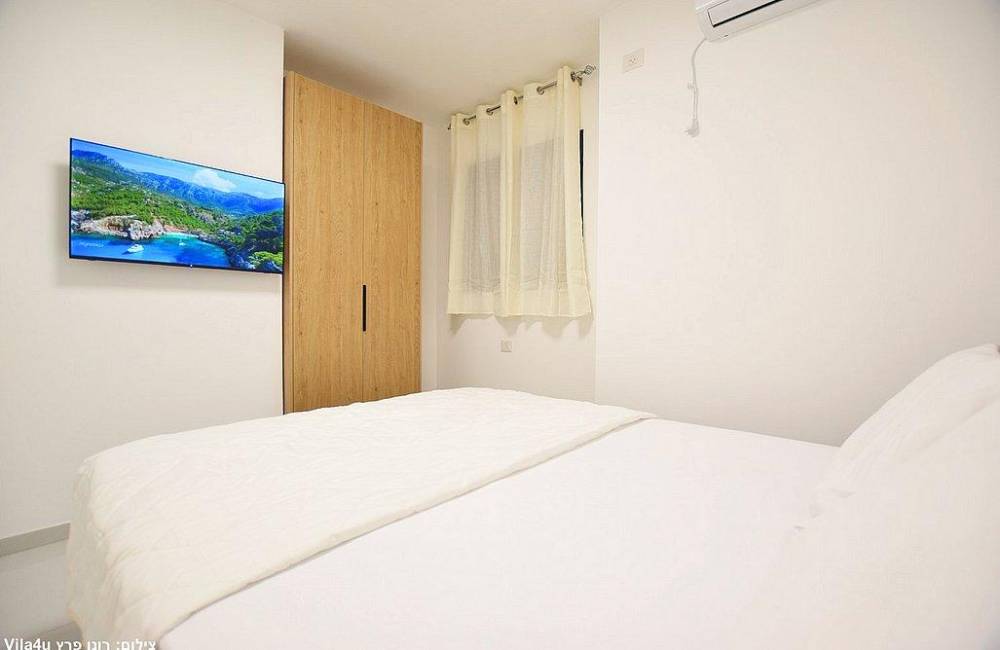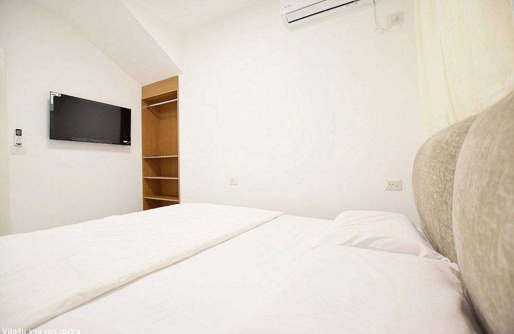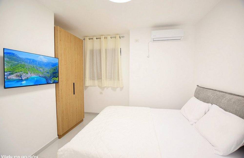 - בכל חדר: מיטה זוגית (מיטות יהודיות), שידה, מזגן, טלוויזיה, ארון. קיים חדר שינה עם חדר רחצה פרטי