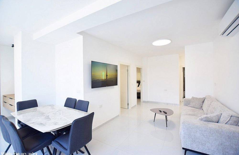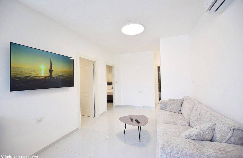 - סלון עם טלוויזיה חכמה.