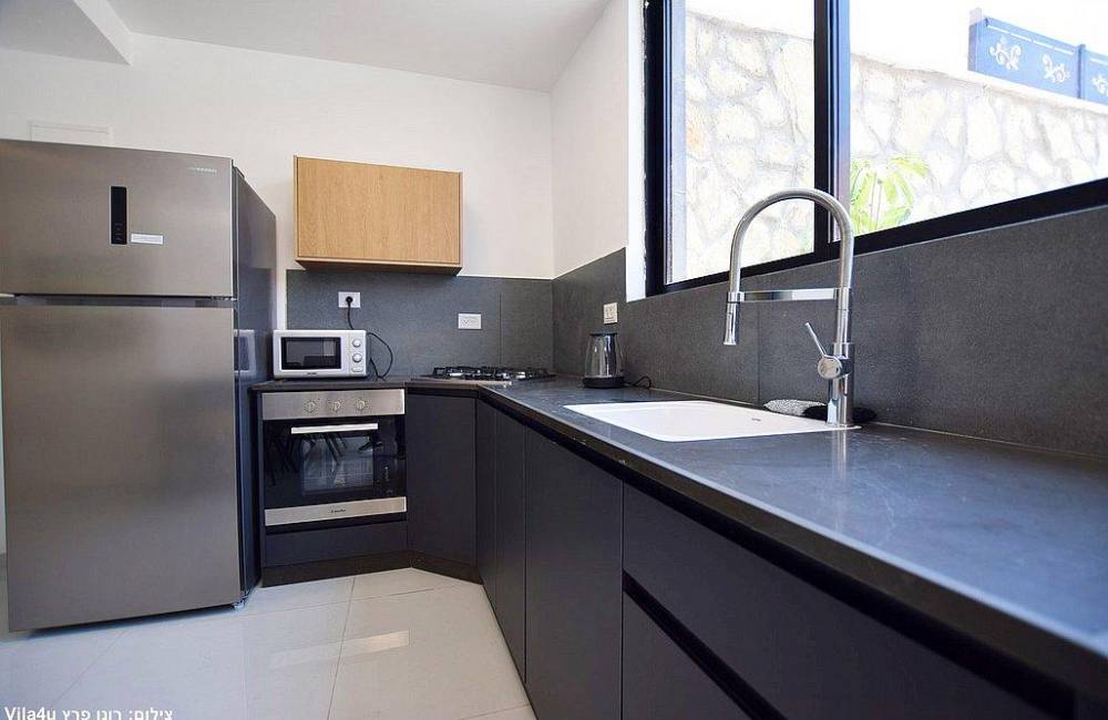 - מטבח מאובזר: מקרר, מיקרוגל, כיריים גז, כלי אוכל והגשה.