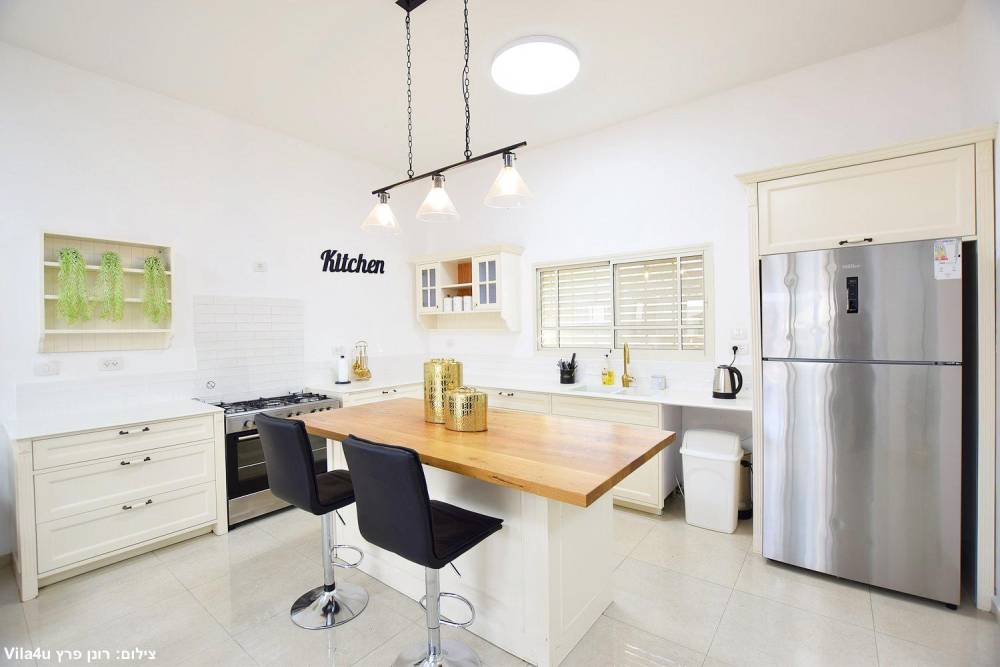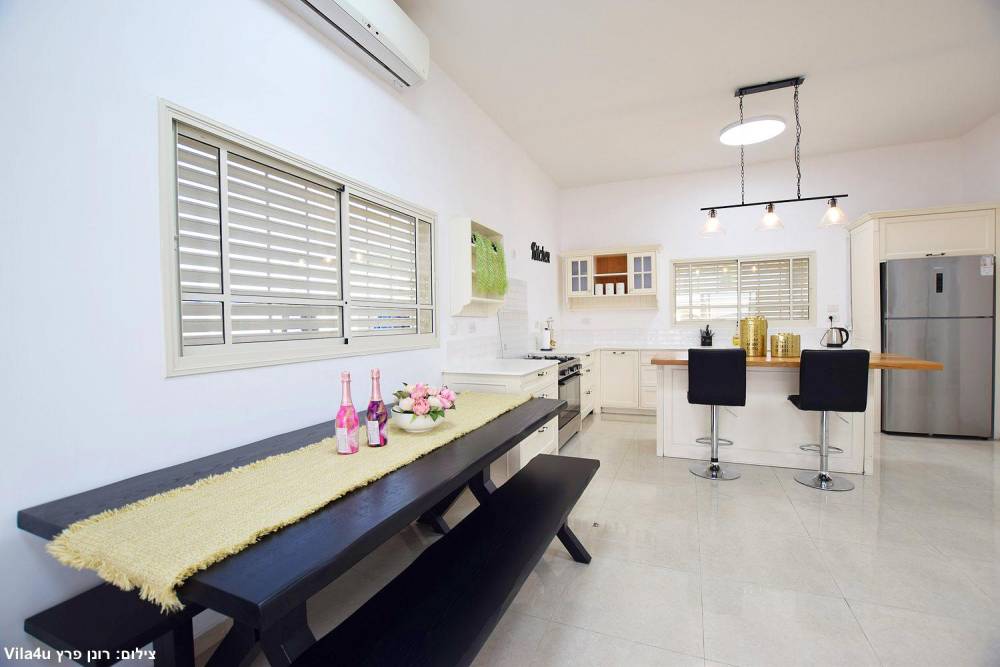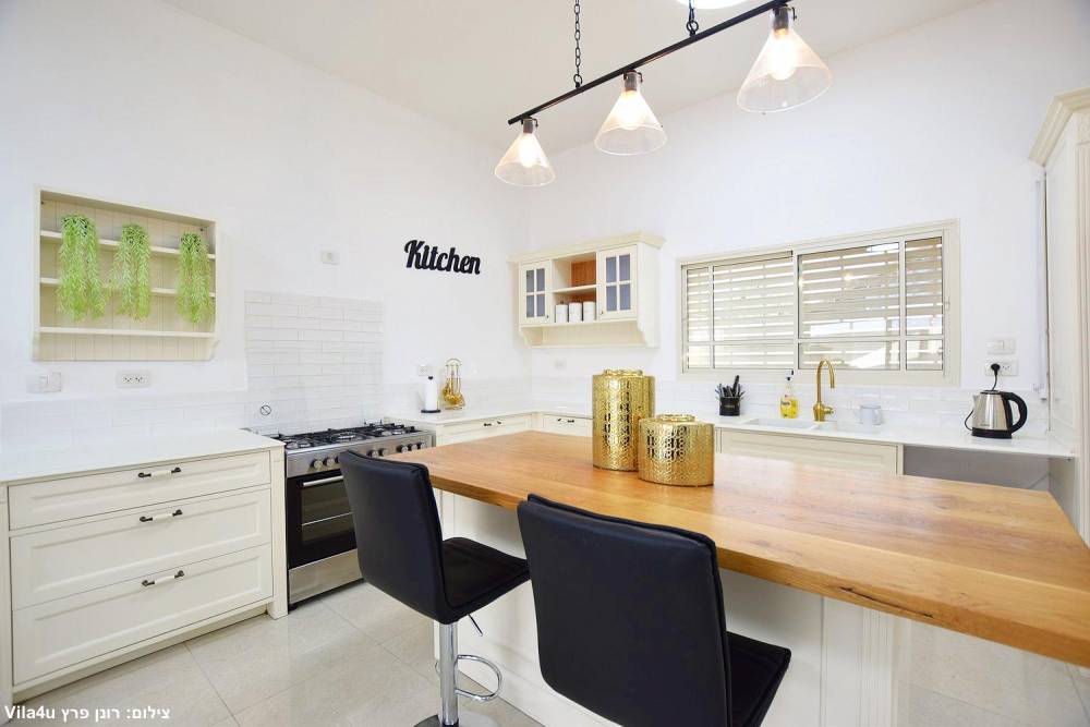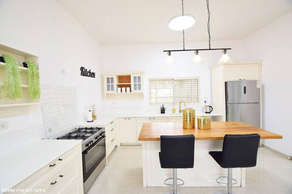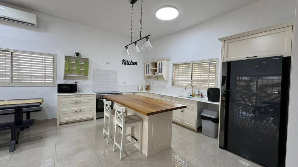 מטבח מאובזר קומפלט הכולל: מקרר, מקפיא, כיור בשרי וחלבי, מיקרוגל, תנור אפייה, כיריים גז, קומקום חשמלי, פינת קפה, כלי אוכל והגשה, תמי 4.