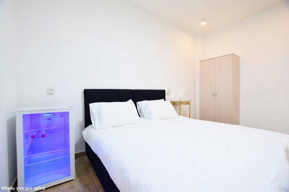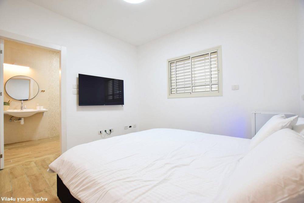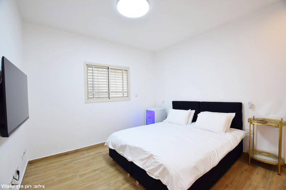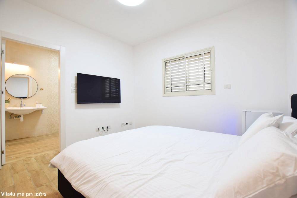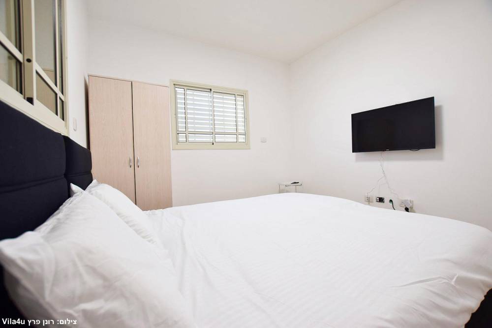חדר שינה 1 - מיטה יהודית, ארון לאחסון, שידה, מסך טלוויזיה בחיבור ל-YES, מקרר מיני, מתלה בגדים, חדר רחצה פרטי.
